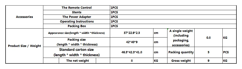 1. 100% Новинка и высокое качество! 2. С помощью этого 15,6 "мульти-функциональная цифровая рамка для фотографий, вы можете просматривать самые дорогие воспоминания без прибегнуть к токарная обработка на вашем компьютере или общаться с бесчисленными громоздкие фотоальбомы. 3. Светодиодный IPS экран с высоким разрешением обеспечивает зрителю четкий и четкий дисплей всех замысловатых улиток, входящих в каждую картинку. 4. Сравните с картами SD/MMC, больше не нужно разрабатывать или передавать файлы изображений с вашей камеры. 5. Просматривайте ваши фотографии индивидуально или как слайд-шоу с интервалом вашего выбора. 6. Эта многофункциональная рамка также поддерживает MPEG и MP3 файл, так что вы можете просматривать ваши любимые видео клипы или слушать ваши любимые мелодии, пока вы Слайд шоу находится в процессе. 7. Поставляется с пультом дистанционного управления, удобным для просмотра ваших любимых видеоклипов и прослушивания Ваших любимых мелодий. 8. Цифровая фоторамка делает подключение с друзьями и семьей простым.