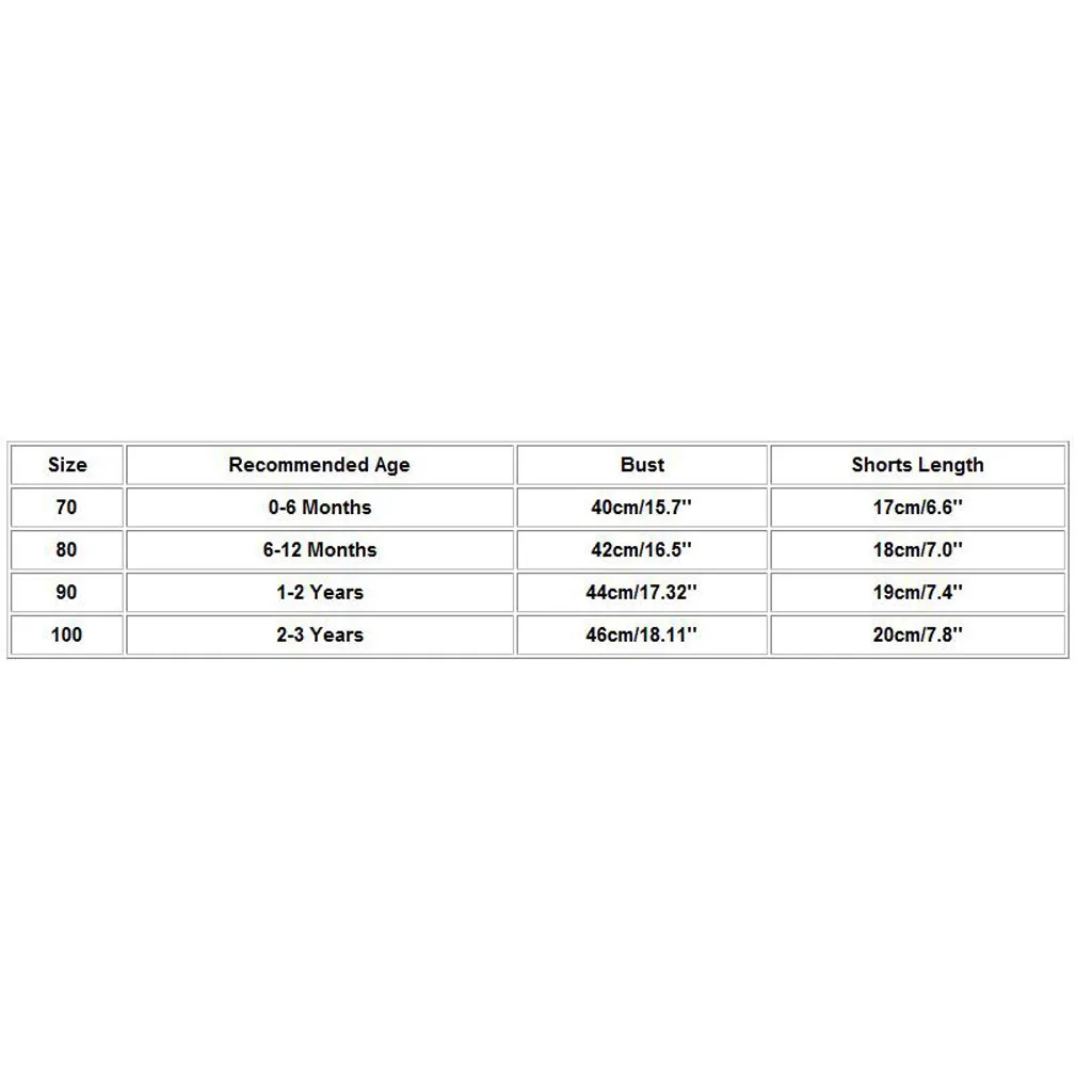 Размеры Рекомендуемый возраст Обхват груди Шорты Длина 70 Для детей от 0 до 6 месяцев 40 см/15,7'' 17 см/6,6'' 80 6-12 месяцев 42 см/16,5'' 18 см/7,0'' 90 Для детей от 1 до 2 лет 44 см/17,32'' 19 см/7,4'' 100 От 2 до 3 лет 46 см/18,11'' 20 см/7,8''
