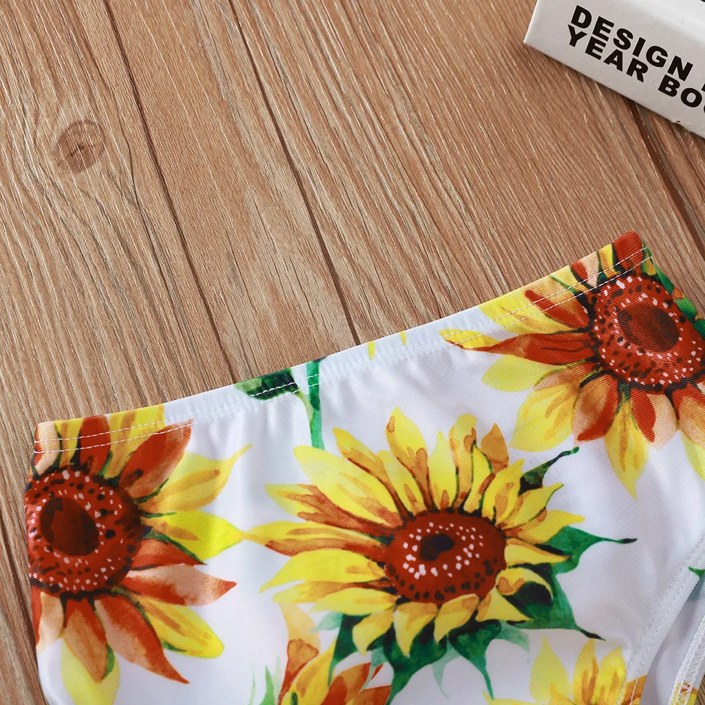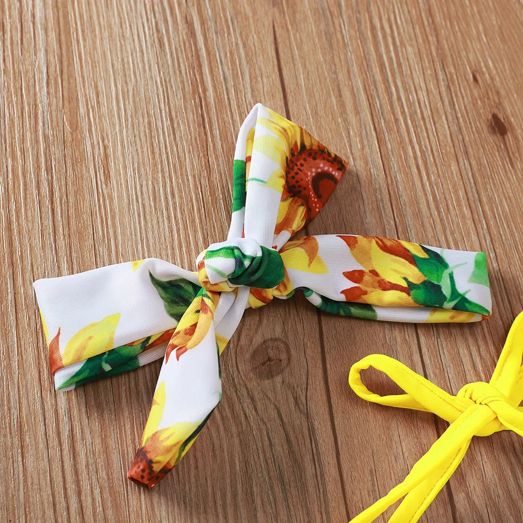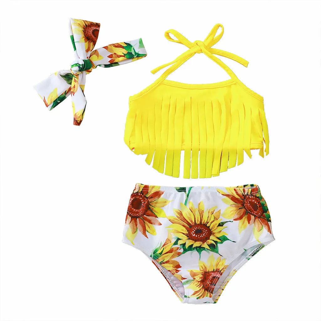 Детский летний купальный костюм с кисточками и принтом подсолнуха для маленьких девочек; Комплекты бикини