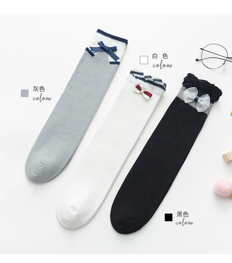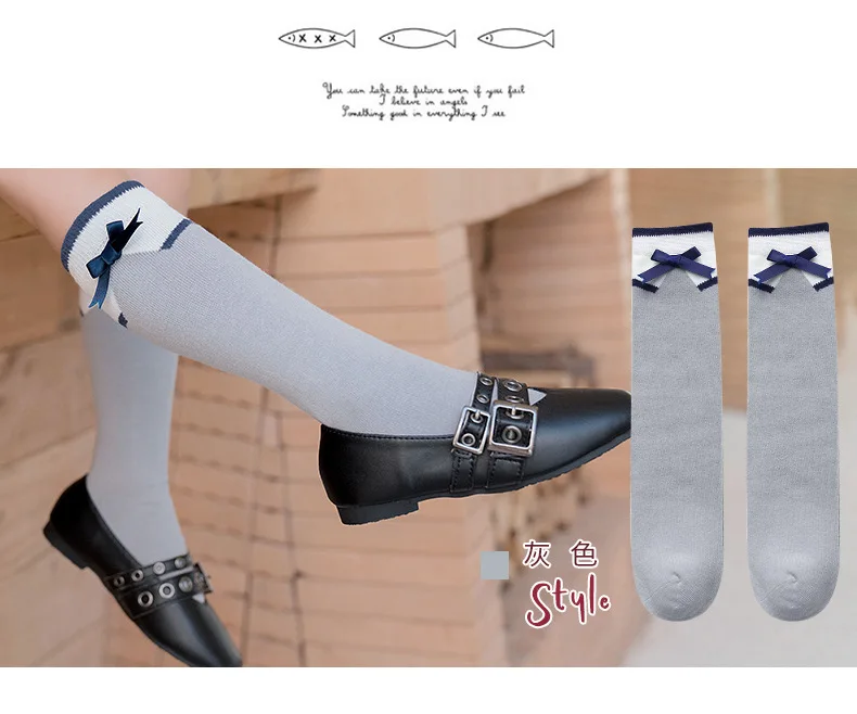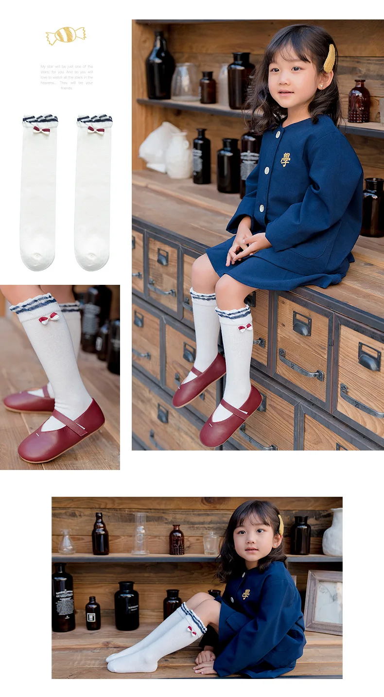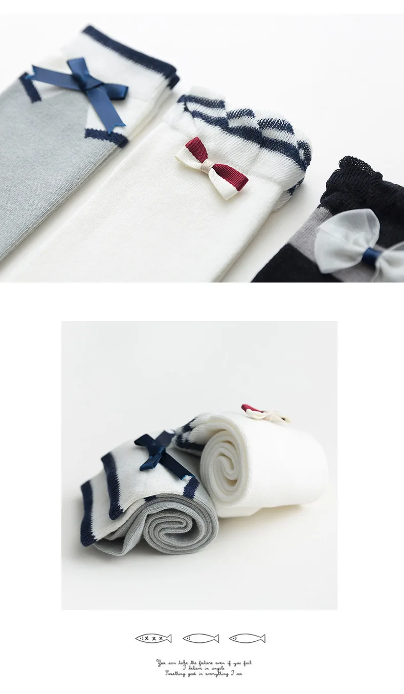 3 пар/лот, Хлопковые гольфы для девочек Школьные носки принцессы с бантом весенне-летние детские носки