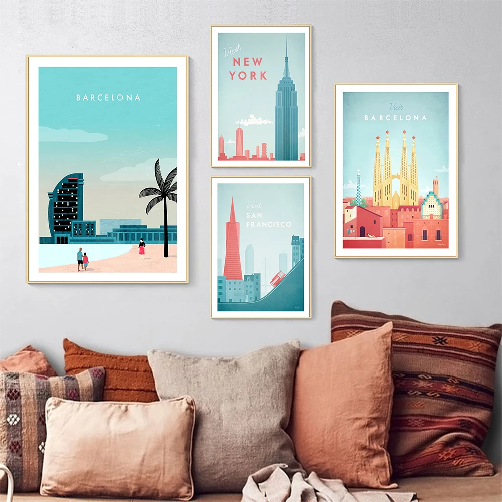 Дорожный плакат HD печать, Картина Настенная Барселона плакат Современный стиль холст печать живопись искусство прохождение гостиной уникальное украшение