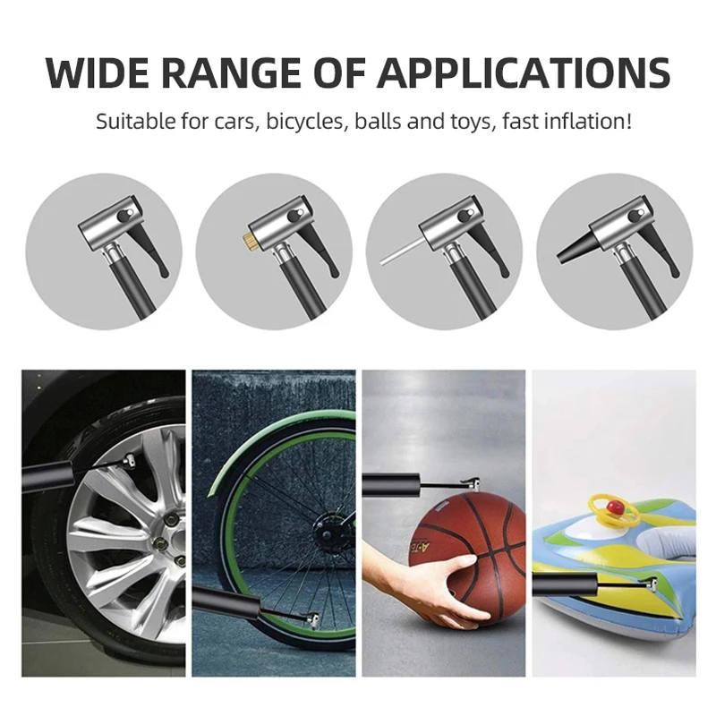 -Для автомобилей/SUV/RV шин -Для велосипедных/мотоциклетных шин -Для спортивного оборудования -Для надувных игрушек Примечание: Не для фургонов, автобусов, домов, грузовиков.