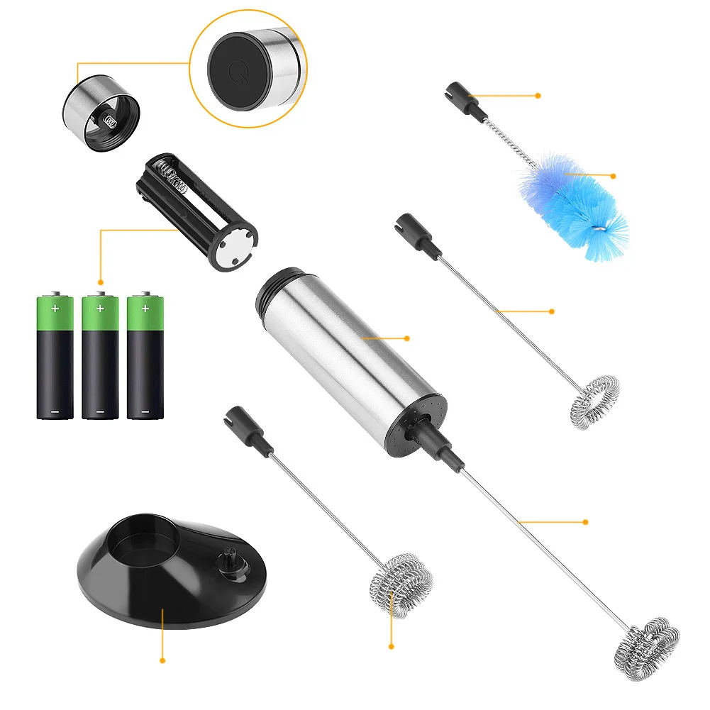1 х молочный пенообразователь (с 3 пружинными венчиком) Щеточка для чистки-1 шт.; Подставка-1 шт.