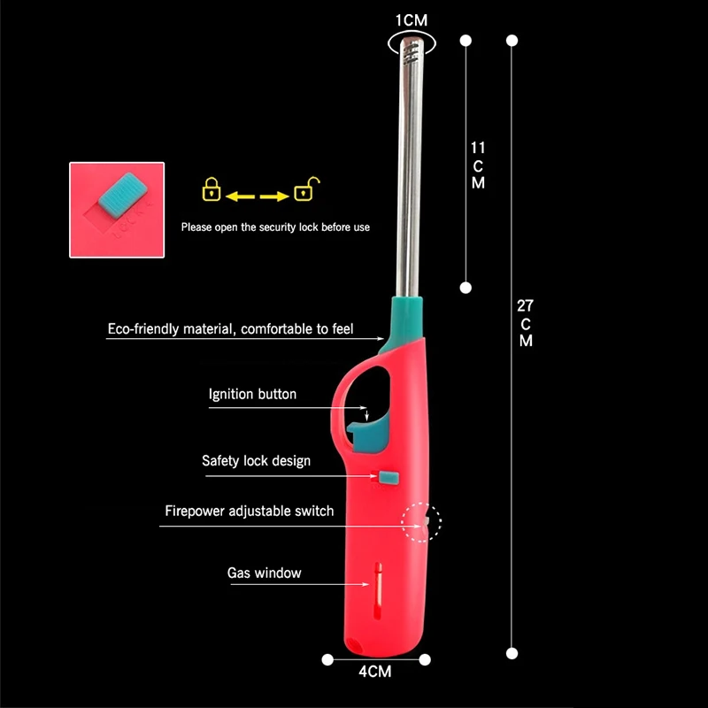 4.With a safety lock, Safety lock design prevents accidental ignition.