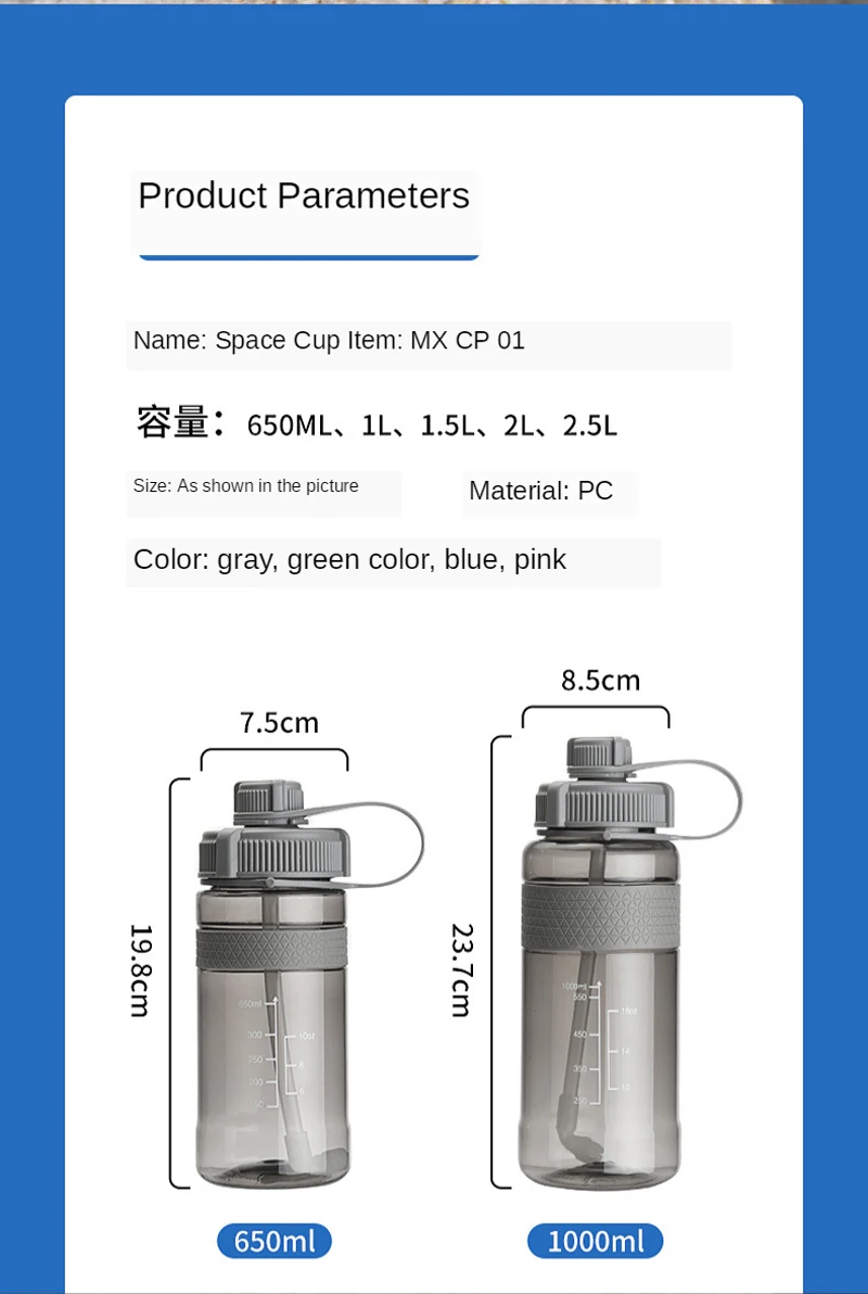 1L 2L 2.5L большой емкости Спортивные портативные бутылки для воды пластиковые Открытый Кемпинг Пикник велосипед Велоспорт Альпинизм питьевые бутылки