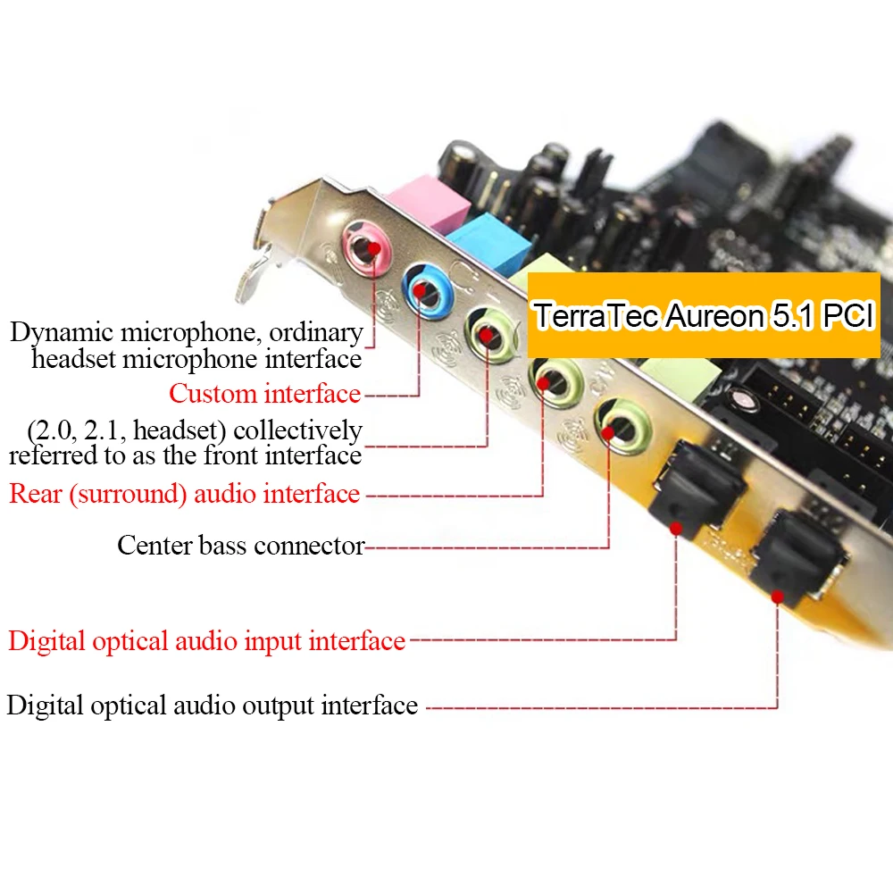 DAC TerraTec Aureon 5,1 PCI Встроенная звуковая карта поддерживает 5,1 каналов с оптическим волоконным входом и выходом и входом микрофона