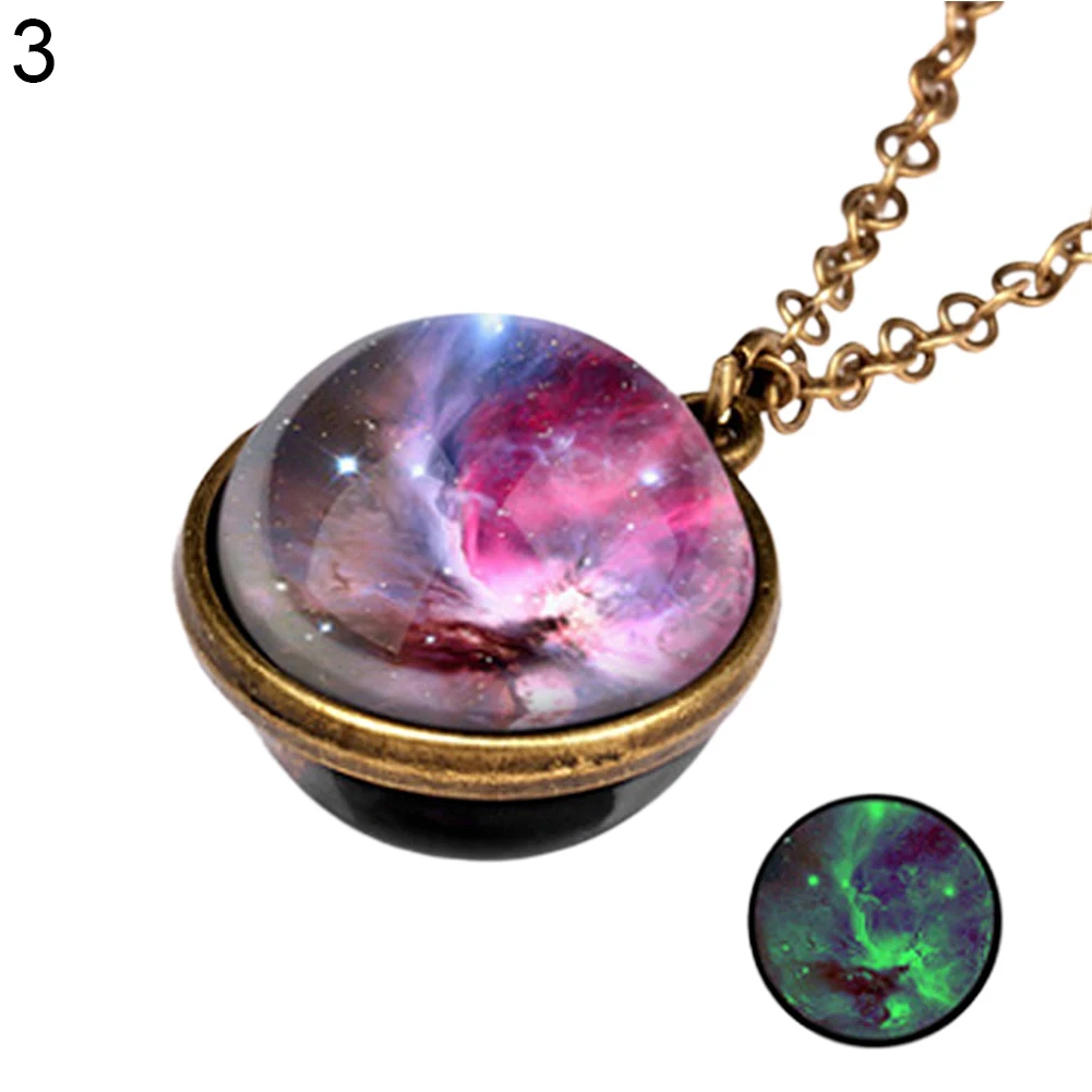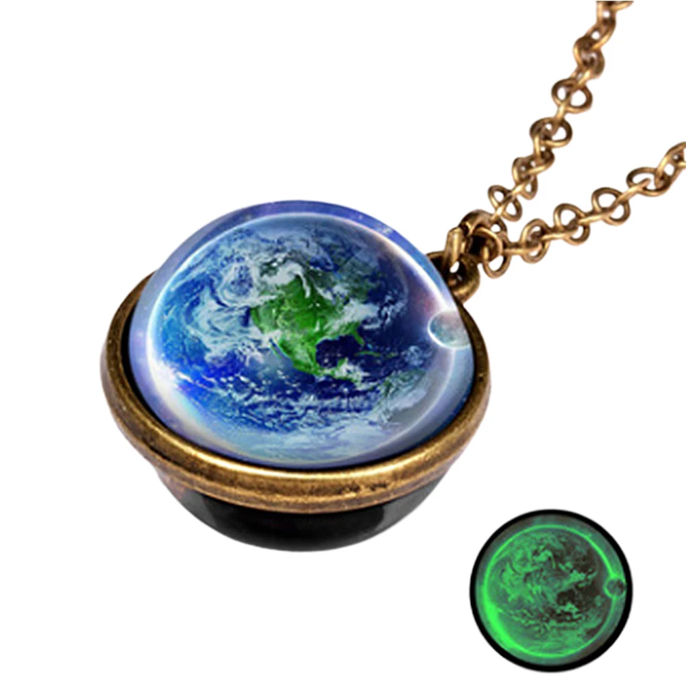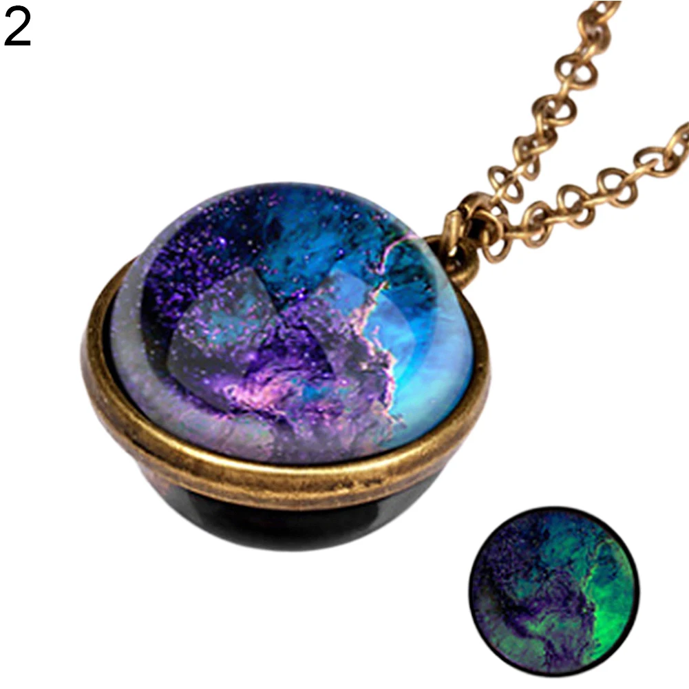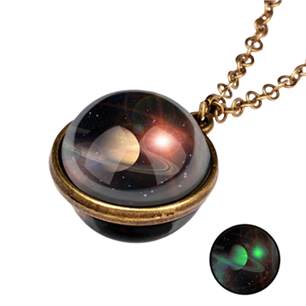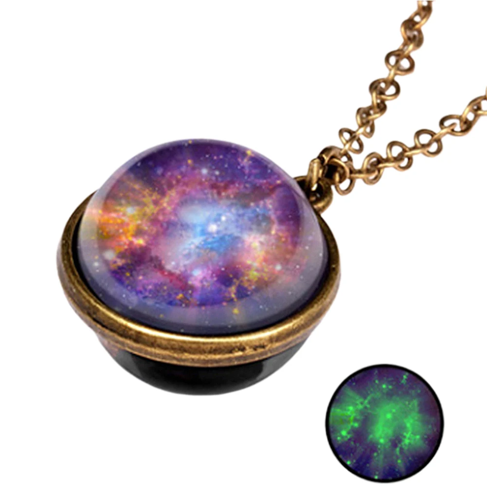 Женская светящаяся Двусторонняя подвеска в стиле «Вселенная», ретро цепочка, ожерелье, ювелирное изделие, подарок