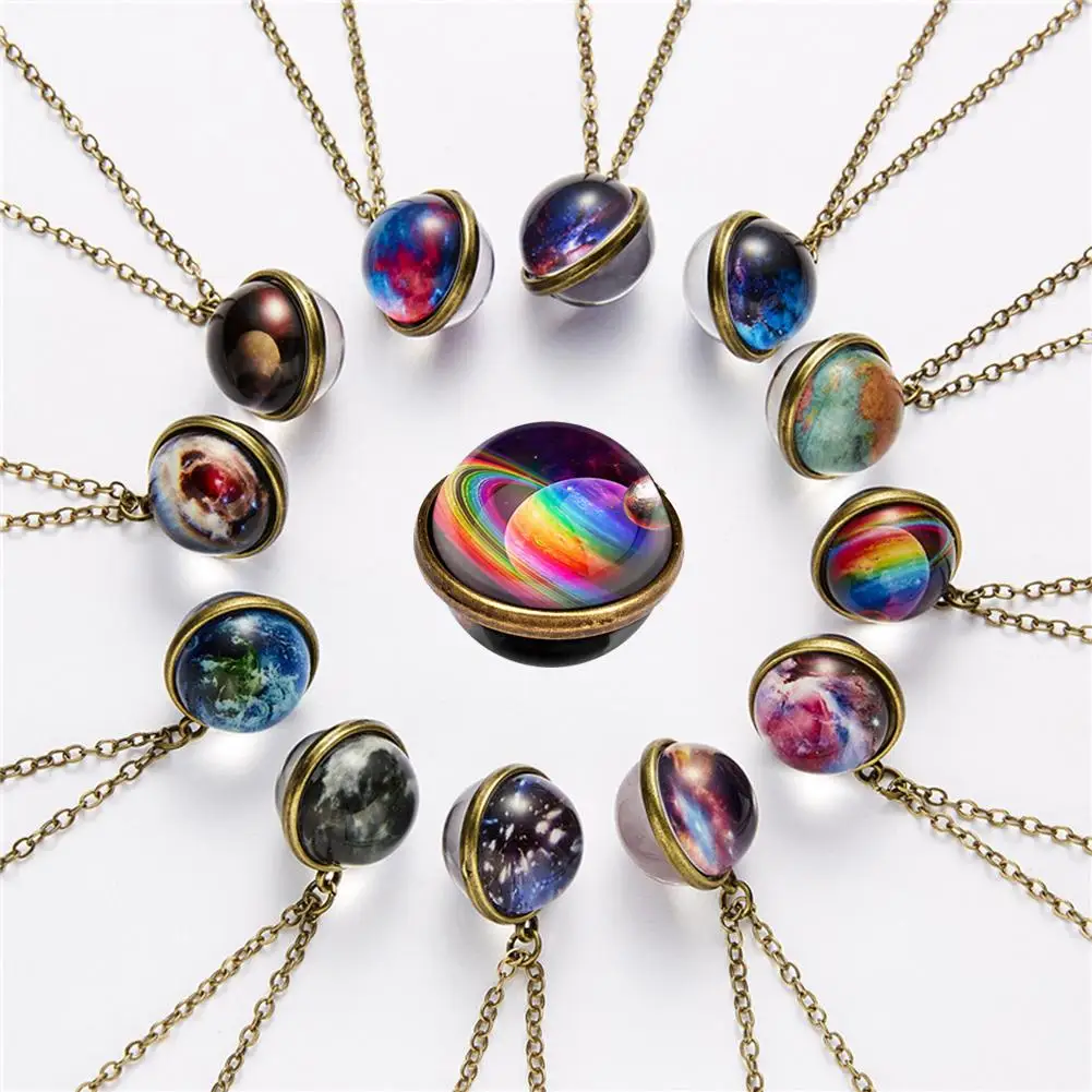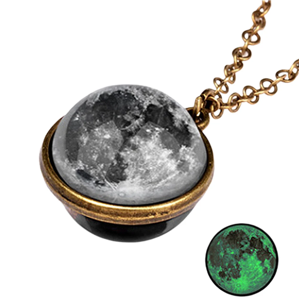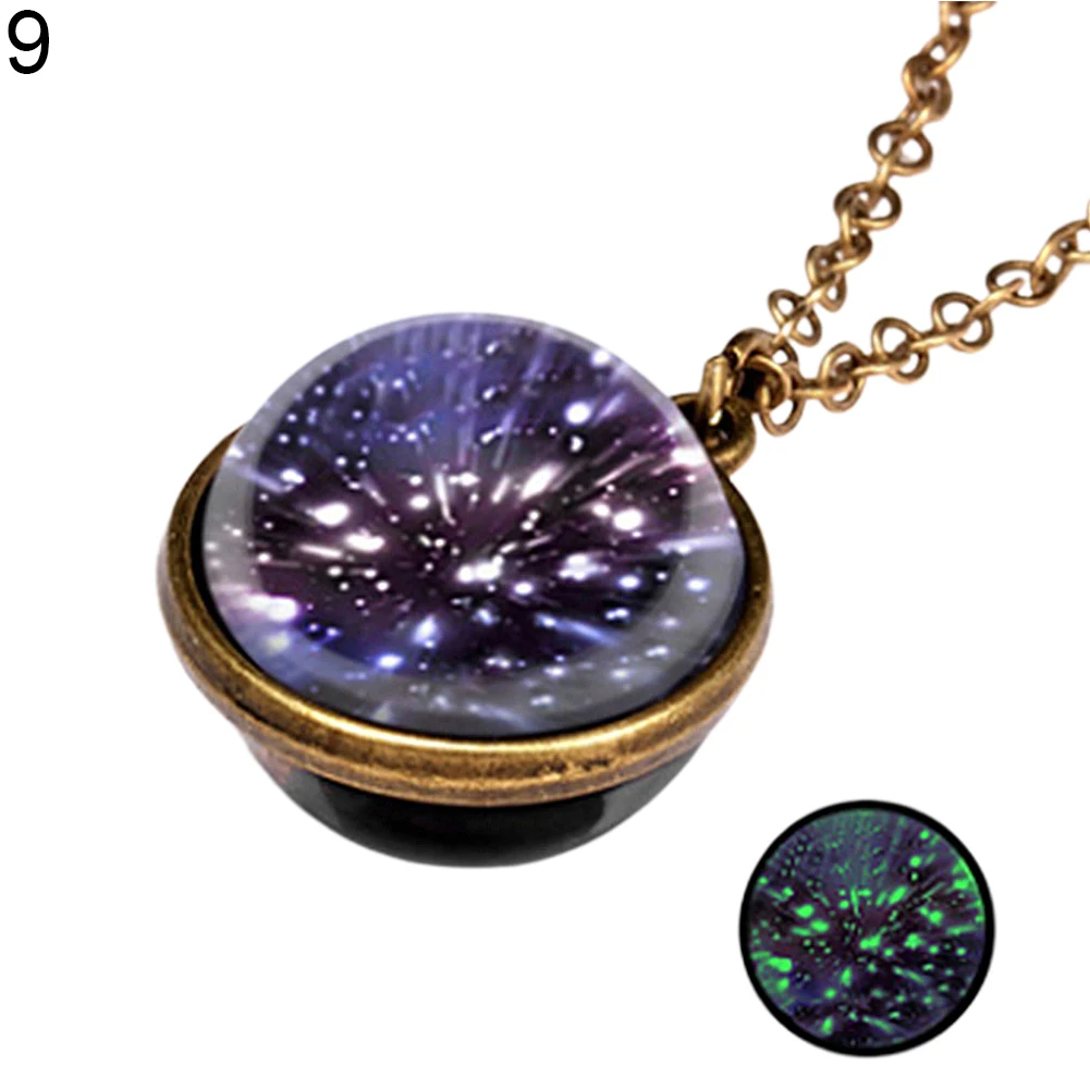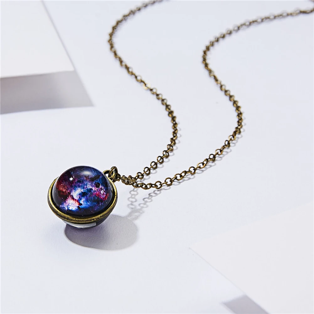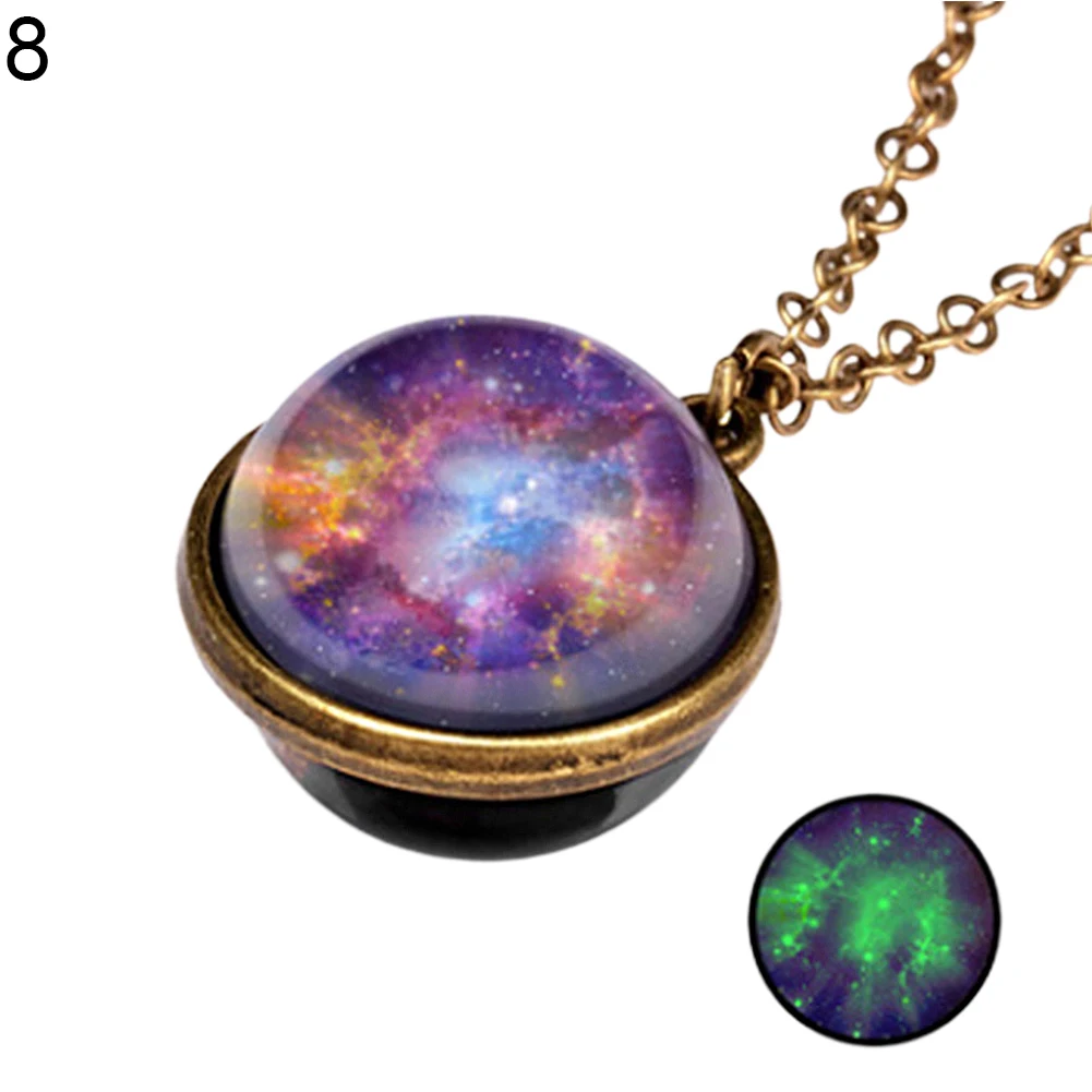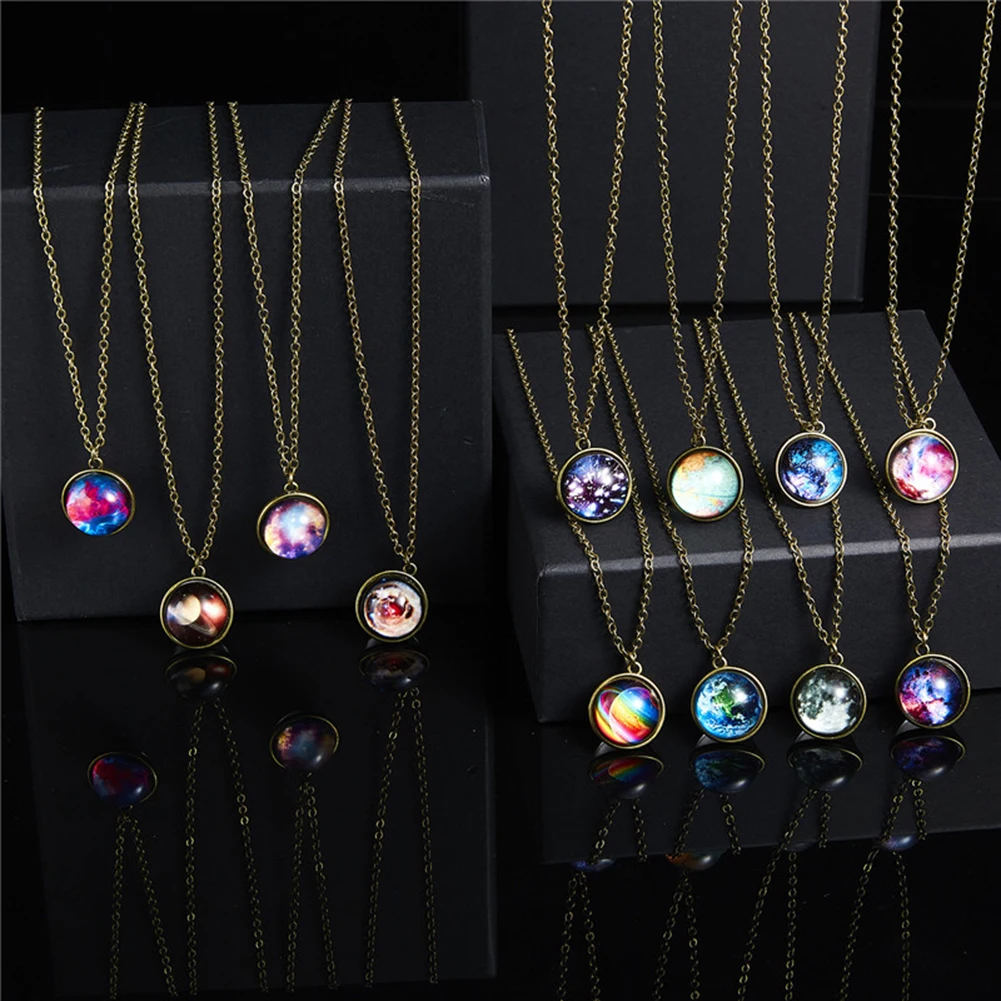 Женская светящаяся Двусторонняя подвеска в стиле «Вселенная», ретро цепочка, ожерелье, ювелирное изделие, подарок
