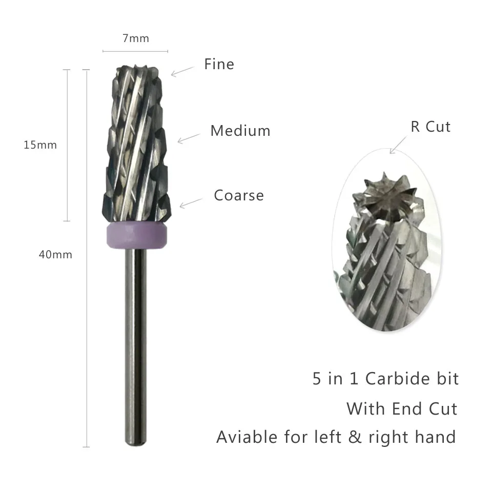 HYTOOS 5 в 1 конические твердосплавные сверла для ногтей фрезы для маникюра удаления акриловых и гелевых ногтей аксессуары инструменты