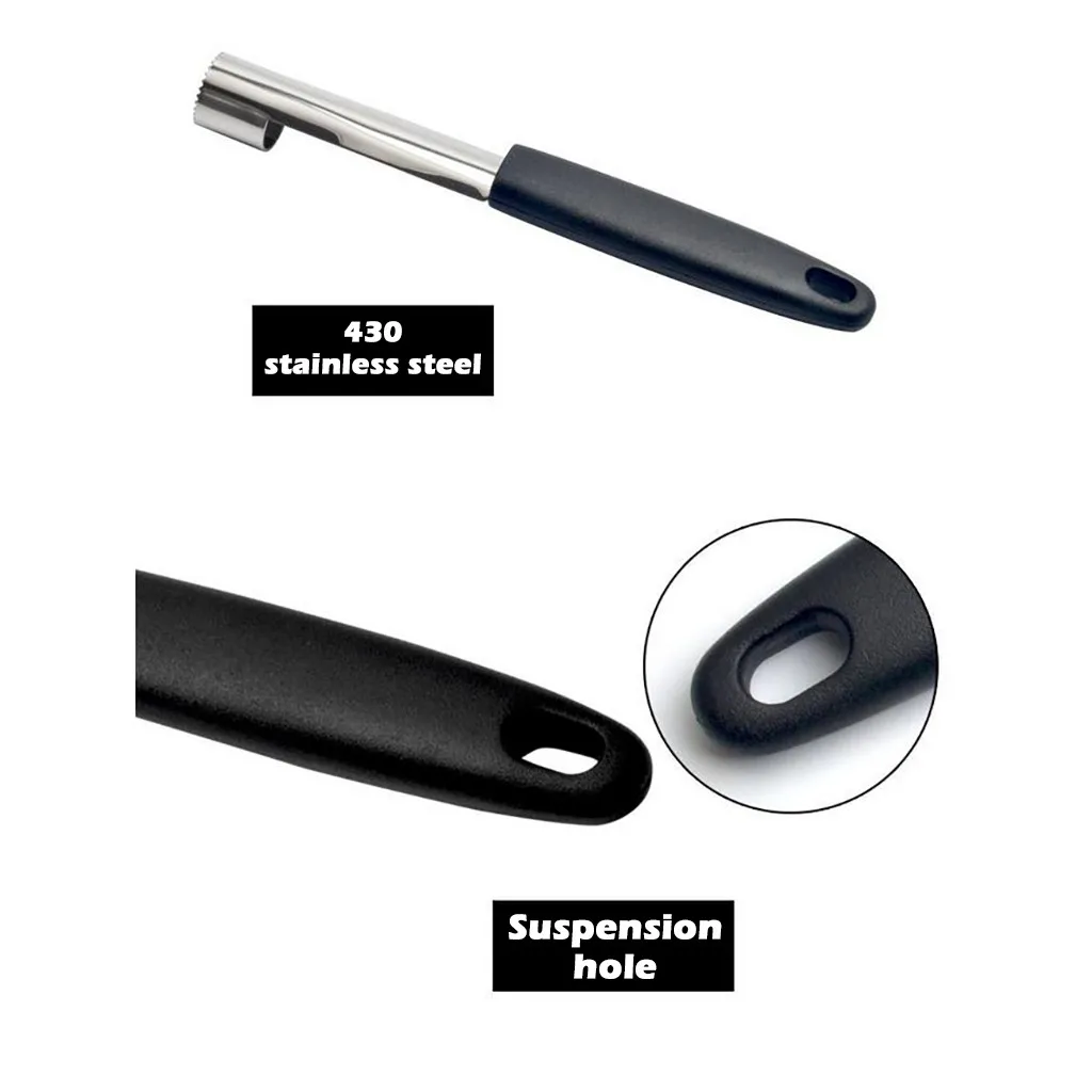 Подходит для корня Яблоков, груши, перца Легко удаляет косточки для фруктов Просто вставьте ствол в ядро apple и поверните для удаления Лезвие Coring из острых и прочных нержавеющей стали Материал: нержавеющая сталь + пластик Общая длина: 180 мм (7 дюймов) Диаметр: 20 мм (0,8 дюйма) Цвет: черный Вес: 32 г Посылка 1 x Corer