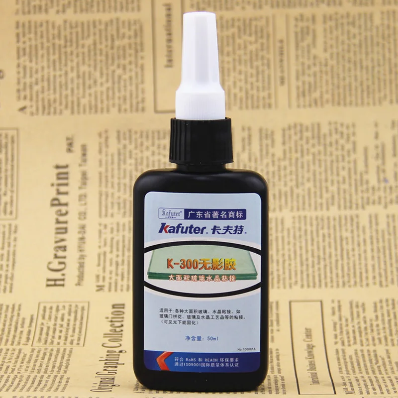 K-300-это модифицированный УФ-или видимый светильник, отверждающий акриловый клей, низкий запах, высокая прозрачность, высокая прочность на склеивание, низкая вязкость, легкая деаэрация, обычно используется в крупногабаритных стеклянных кристаллах, такие как: стеклянная мозаика, изделия из стекла, изделия из кристаллов.