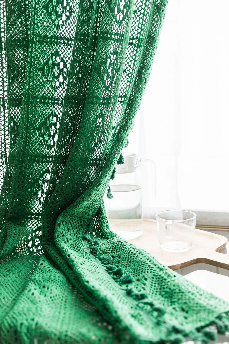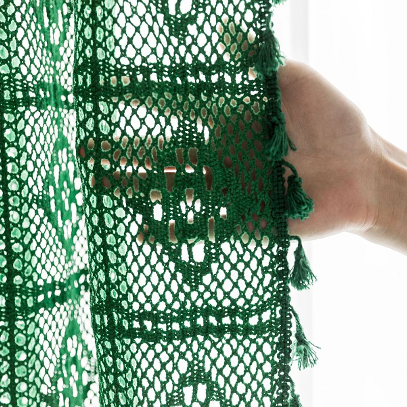 Вязанная ажурная прозрачная занавеска для гостиной, спальни, зеленого цвета, американский стиль, створчатая ткань, домашняя кружевная Тюлевая занавеска ручной работы s