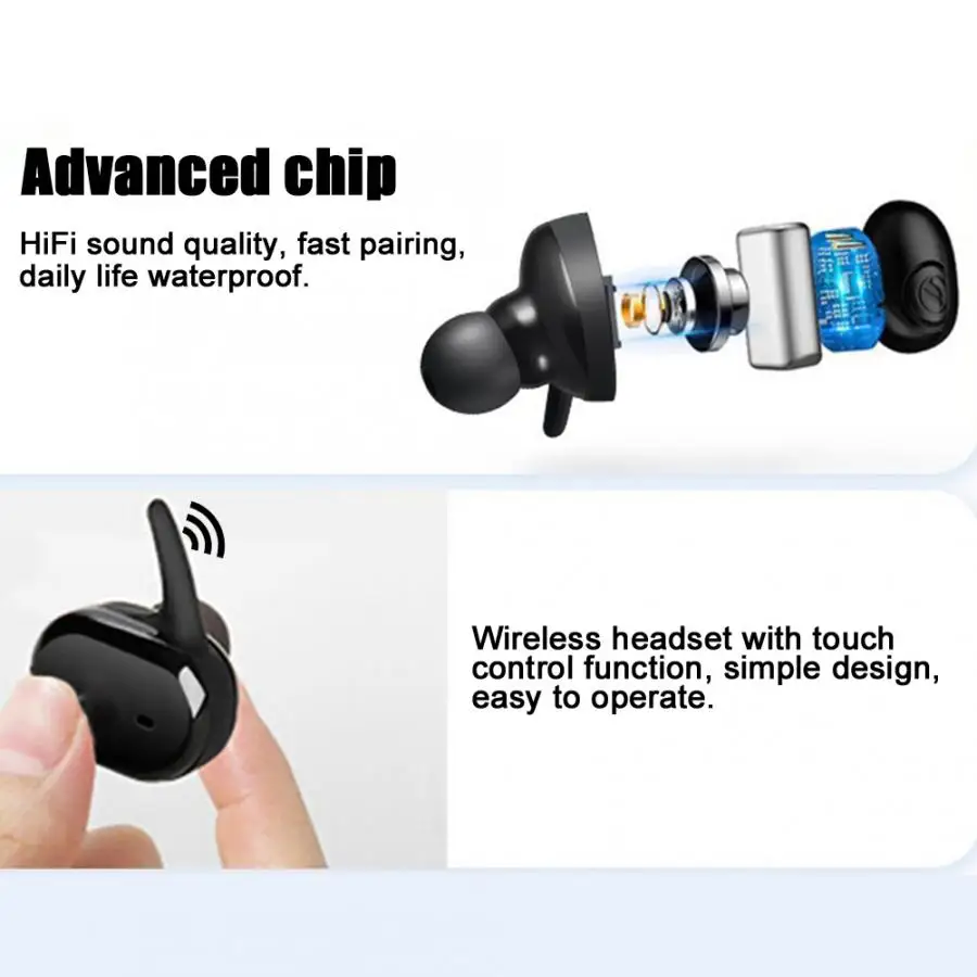 TWS Мини водонепроницаемая bluetooth-гарнитура с беспроводным сенсорным управлением, спортивные наушники, гарнитура