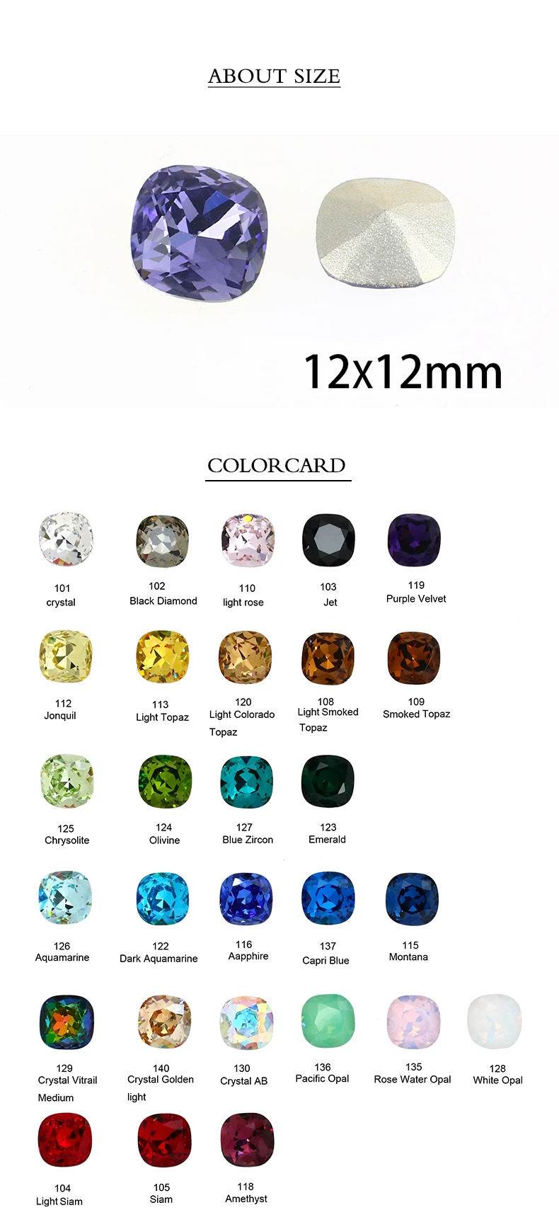 Размер и форма: 12 мм и квадрат жира