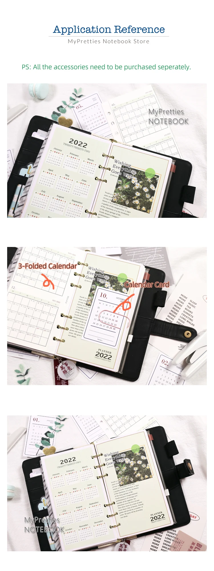 Пожалуйста, обратите внимание, что этот продукт содержит только один лист календарной бумаги. Все органайзеры/аксессуары, показанные ниже, не включены и должны быть приобретены отдельно.