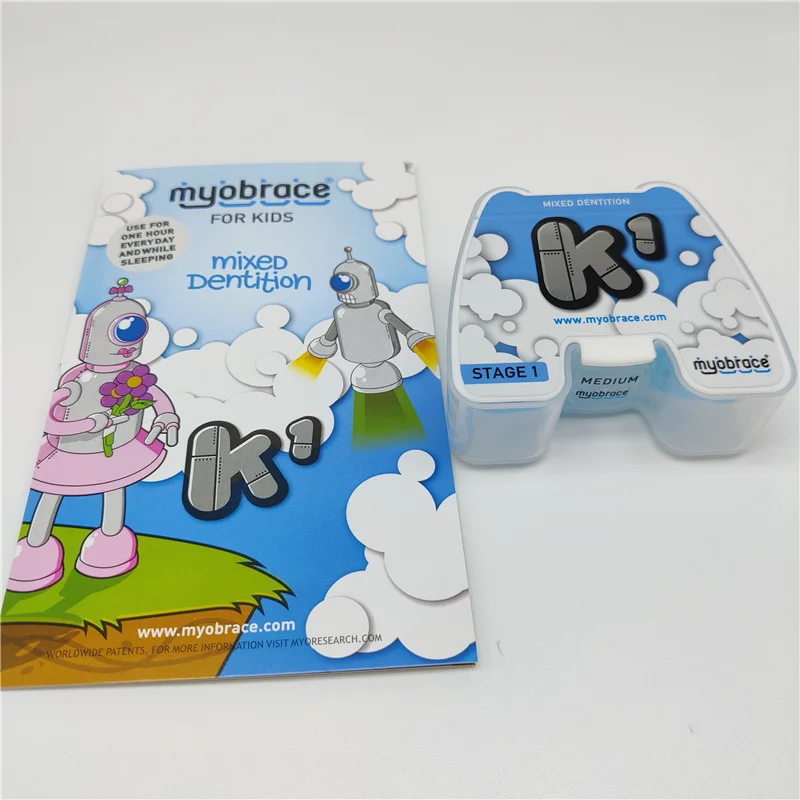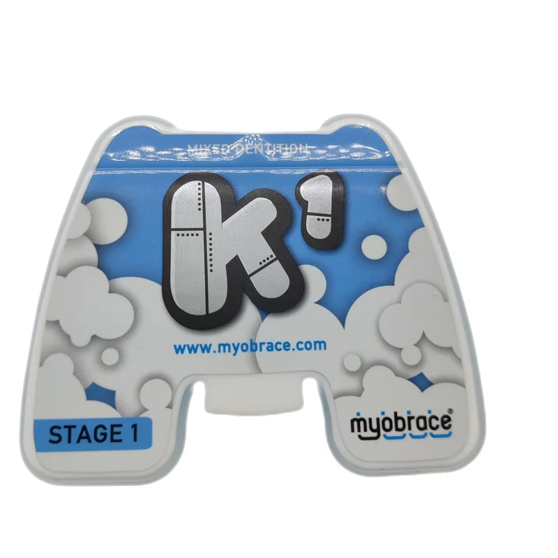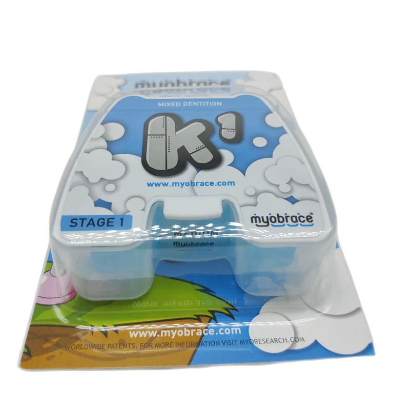 The Myobrace for Kids™ is a three-stage appliance system designed specifically to correct poor oral habits while treating upper and lower jaw development problems. The K1 provides habit correction and is made of flexible silicone to adapt to any arch-form and poorly-aligned teeth. Its flexible nature also means that it offers improved retention for night-time use. MRC has pioneered the use of appliances to correct myofunctional habits in growing children and has proven success in orthodontic correction without braces. This treatment can also lead to better facial development in growing children. The key to this treatment is correcting the position and function of the tongue, obtaining correct nose breathing and retraining the oral muscles to function correctly. Myobrace® appliances effectively train the tongue to position correctly in the upper jaw, retrain oral musculature and exert light forces to align the teeth. Patient Selection The Myobrace for Kids™ is most effective when a child’s permanent teeth are coming through (ages 5 to 10) and is available in three sizes.Directions for use