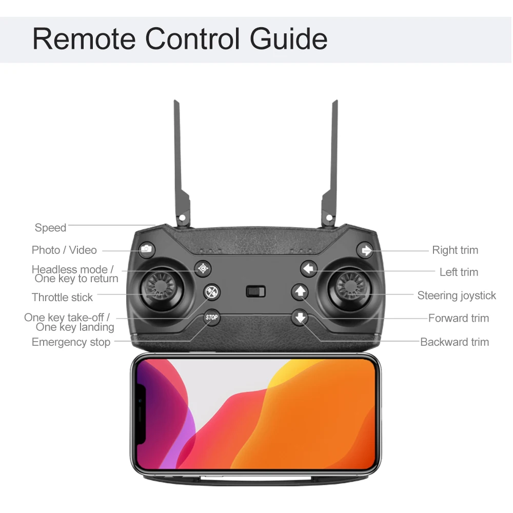 • Один ключ для возврата: пульт дистанционного управления может легко реализовать автоматический возврат дрона, вам не придется беспокоиться о потере дрона из-за неправильного управления.