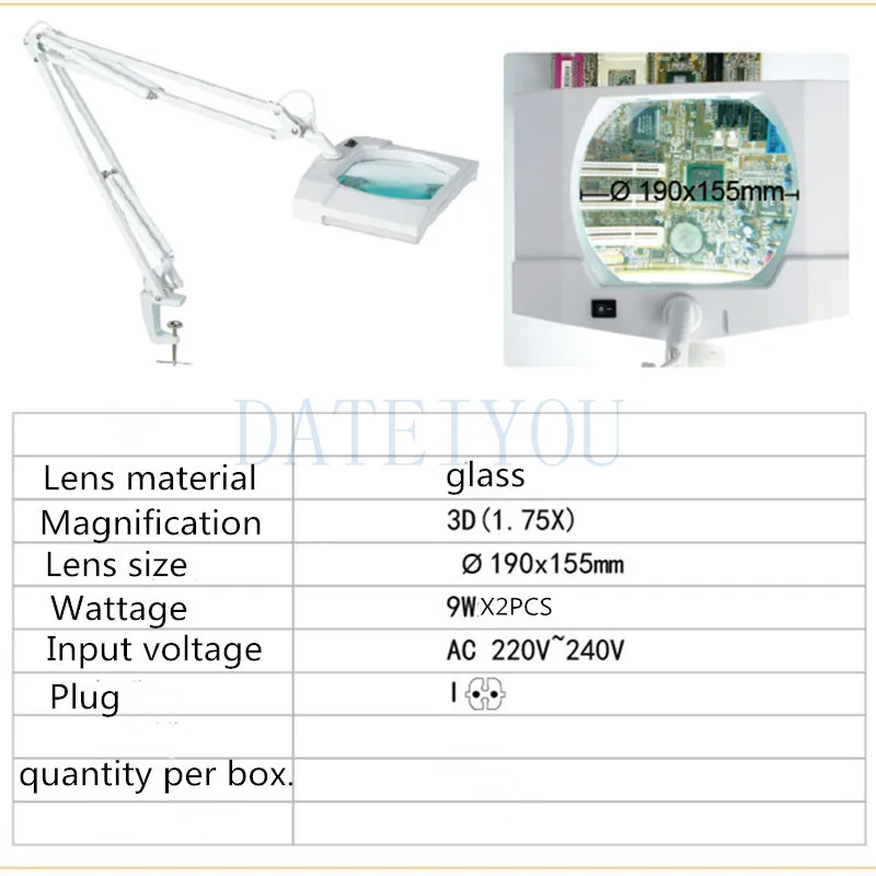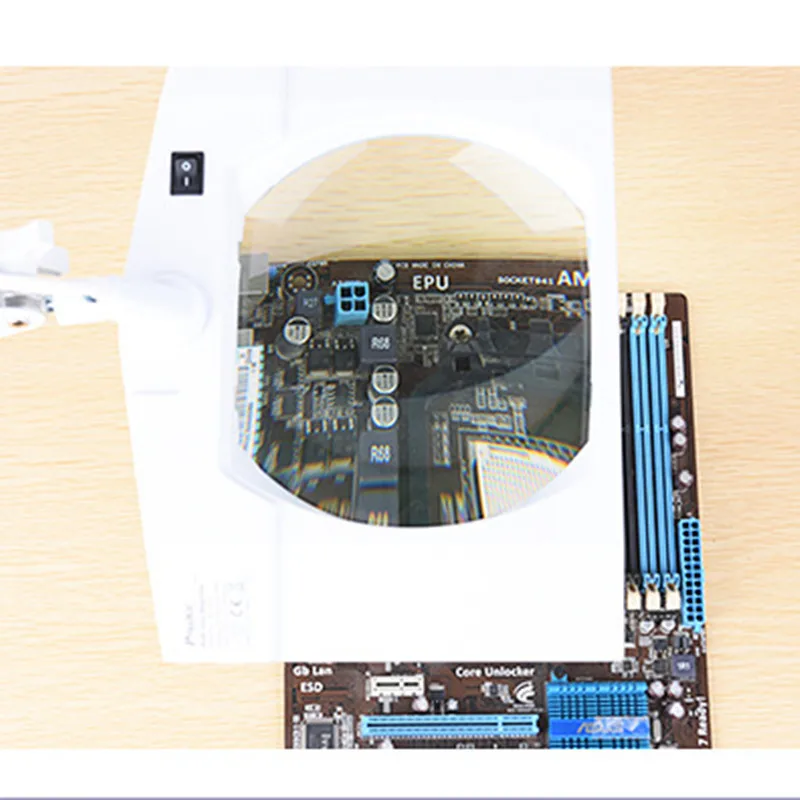 Увеличительное стекло настольная лампа PL трубка 3D широкоугольный увеличительный стеклянный зажим Рабочая лампа