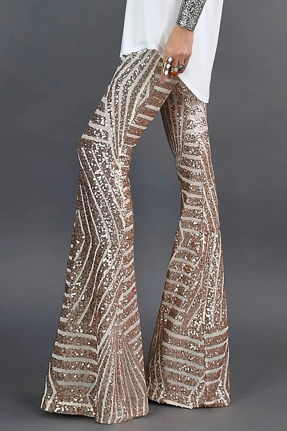 Женские широкие брюки с блестками, абрикосовые/коричневые/черные брюки с высокой талией, облегающие длинные Блестящие Брюки, Повседневная Уличная одежда, расклешенные длинные брюки
