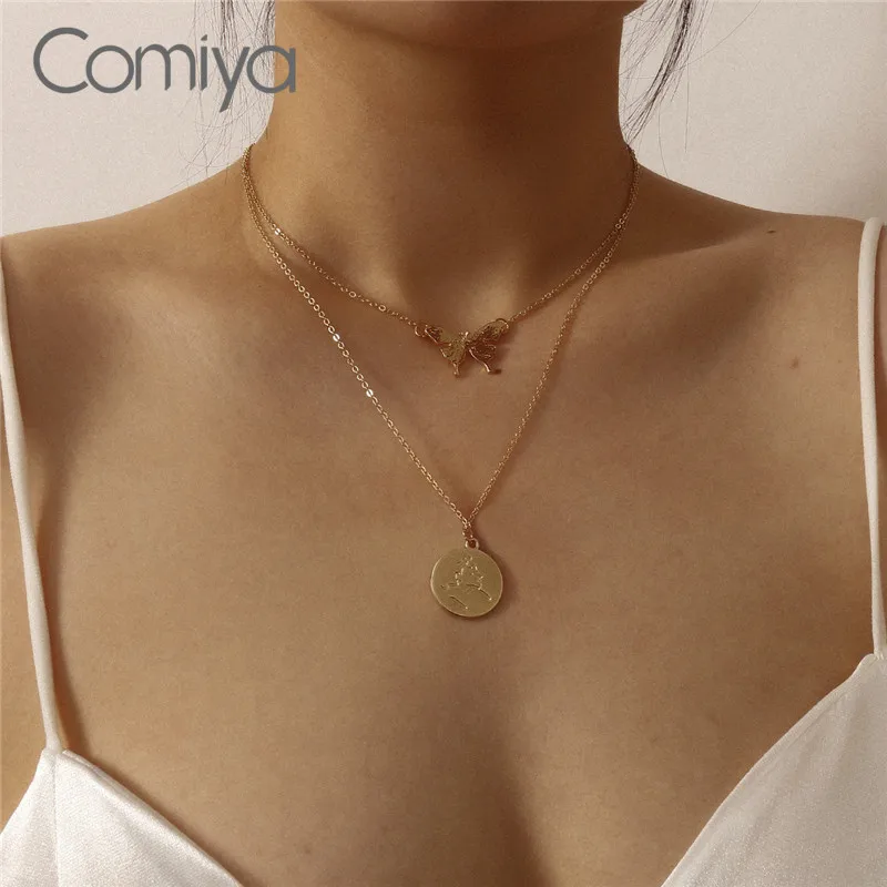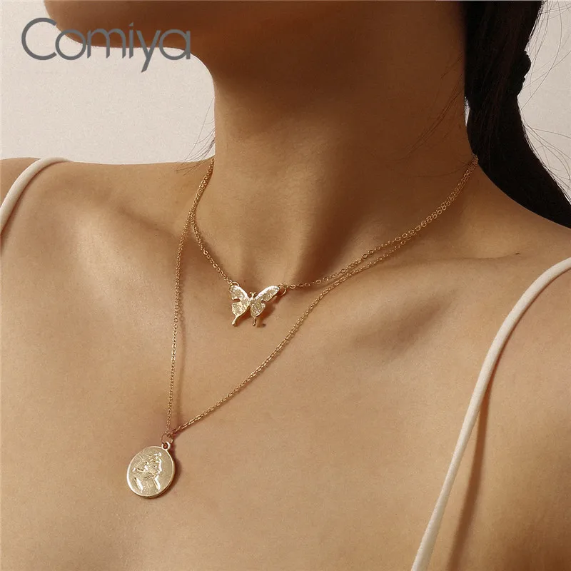 Женское Двухслойное колье-чокер Comiya, золотое ожерелье круглой формы с бабочкой, ювелирное изделие в подарок