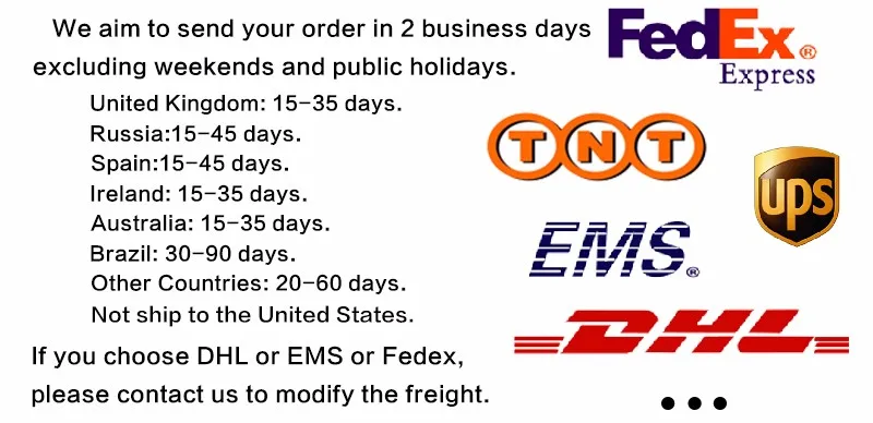 1. О доставке: он будет отправлен как можно скорее после размещения заказа. Праздники могут иметь некоторое влияние.