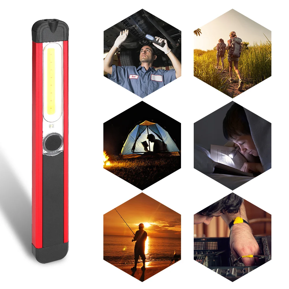 Мощсветильник фонарь COB на магните, 5 режимов работы, зарядка от USB, контросветильник онарь с красным/белым светильник том
