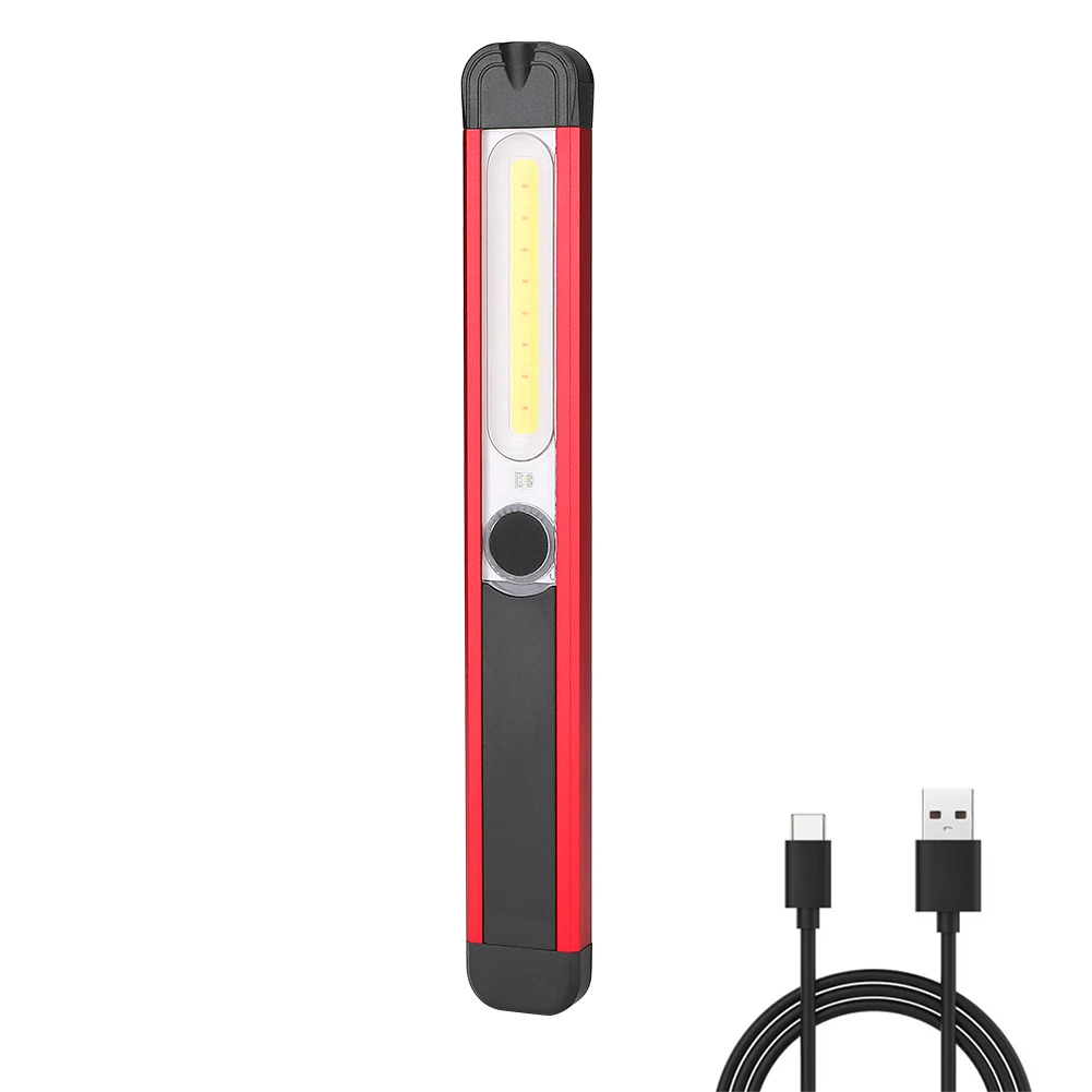 Особенности: Высококачественный материал с длительным сроком службы. Светодиод COB, яркий и энергосберегающий. С помощью мощного магнита на задней панели вы можете прикрепить его к автомобилю или другой металлической поверхности для использования в качестве рабочего фонаря, кемпинговой лампы. Встроенный перезаряжаемый аккумулятор, интерфейс USB для зарядки, легко заряжать. Подходит для самообороны, кемпинга, треккинга, ночной езды, ремонта автомобилей и так далее. Спецификация: Материал: алюминиевый сплав и АБС Цвет изделия: черный и красный Цвет светильник: белый и красный Источник светильник светодиодный + COB Размер: 19,6 см x 2,7 см x 1,2 см Вес: 61 г Питание: встроенная перезаряжаемая литиевая батарея Светильник: XPG верхсветильник, COB белый высокий светильник, COB Белый низсветильник, COB светильник, COB красный свет стробоскоп Посылка входит: Светильник 1 x USB-кабель для зарядки