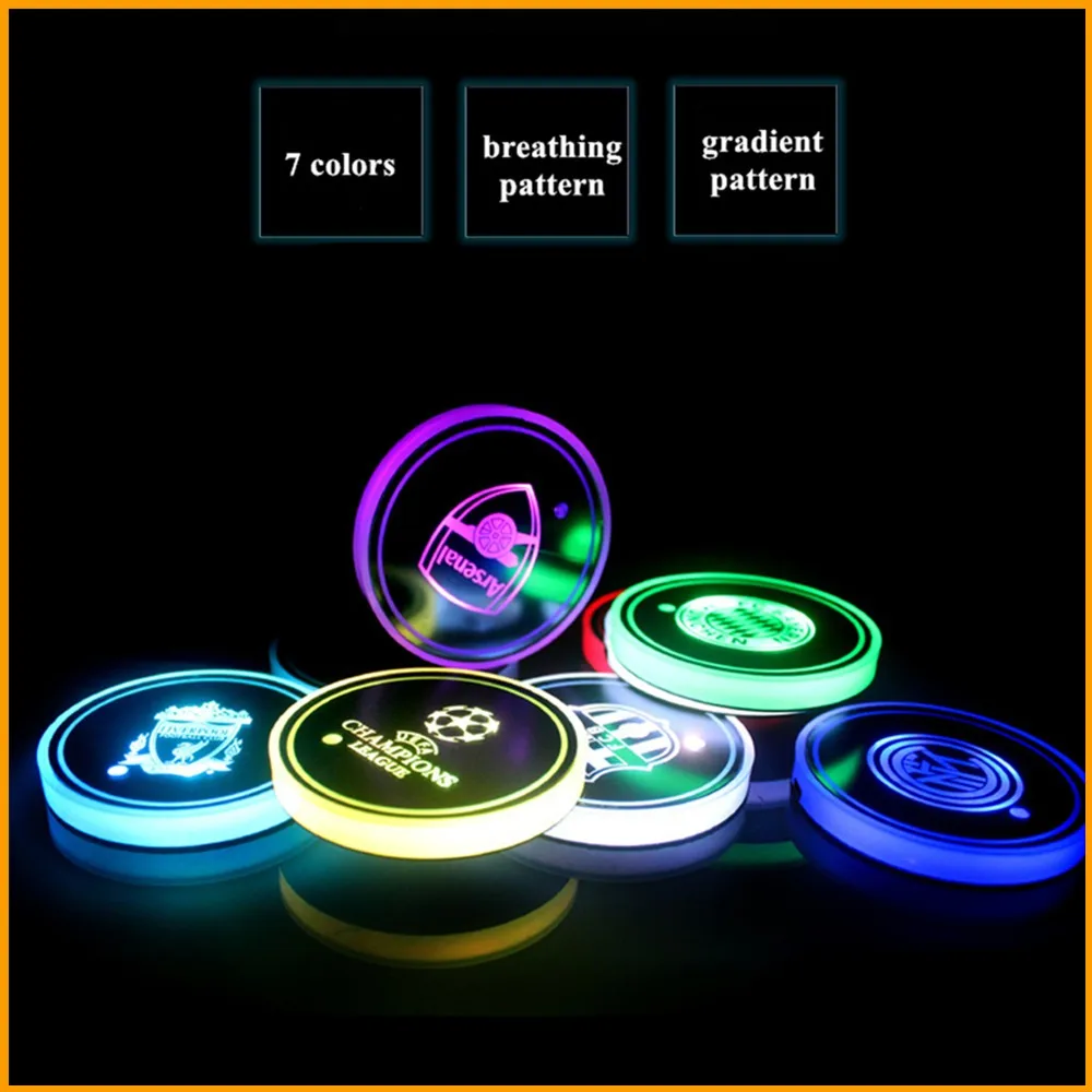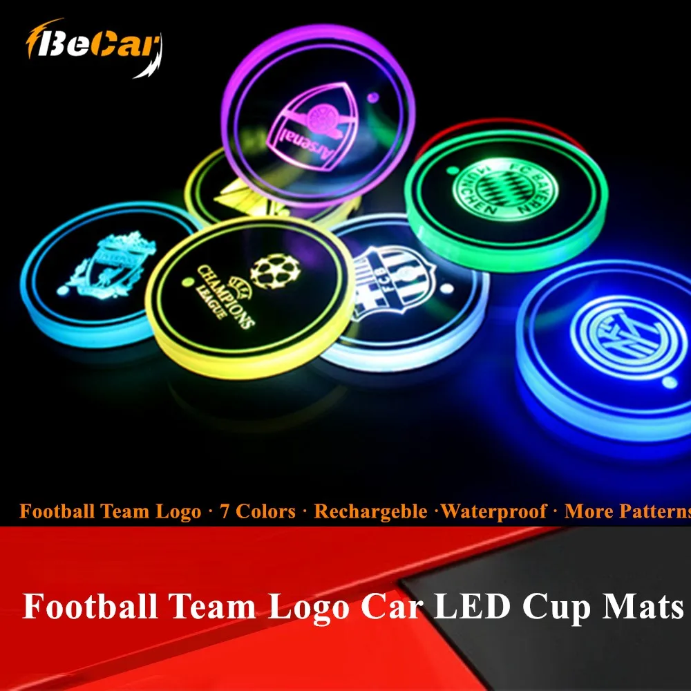2 шт. футбольный логотип автомобильный светильник светодиодный подстаканник для напитков противоскользящие подушечки для BMW для Volkswagen для Ford для Chevrolet аксессуары