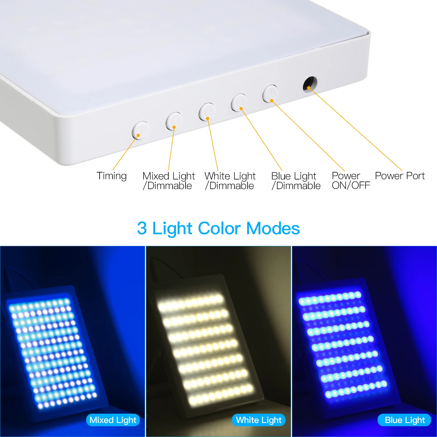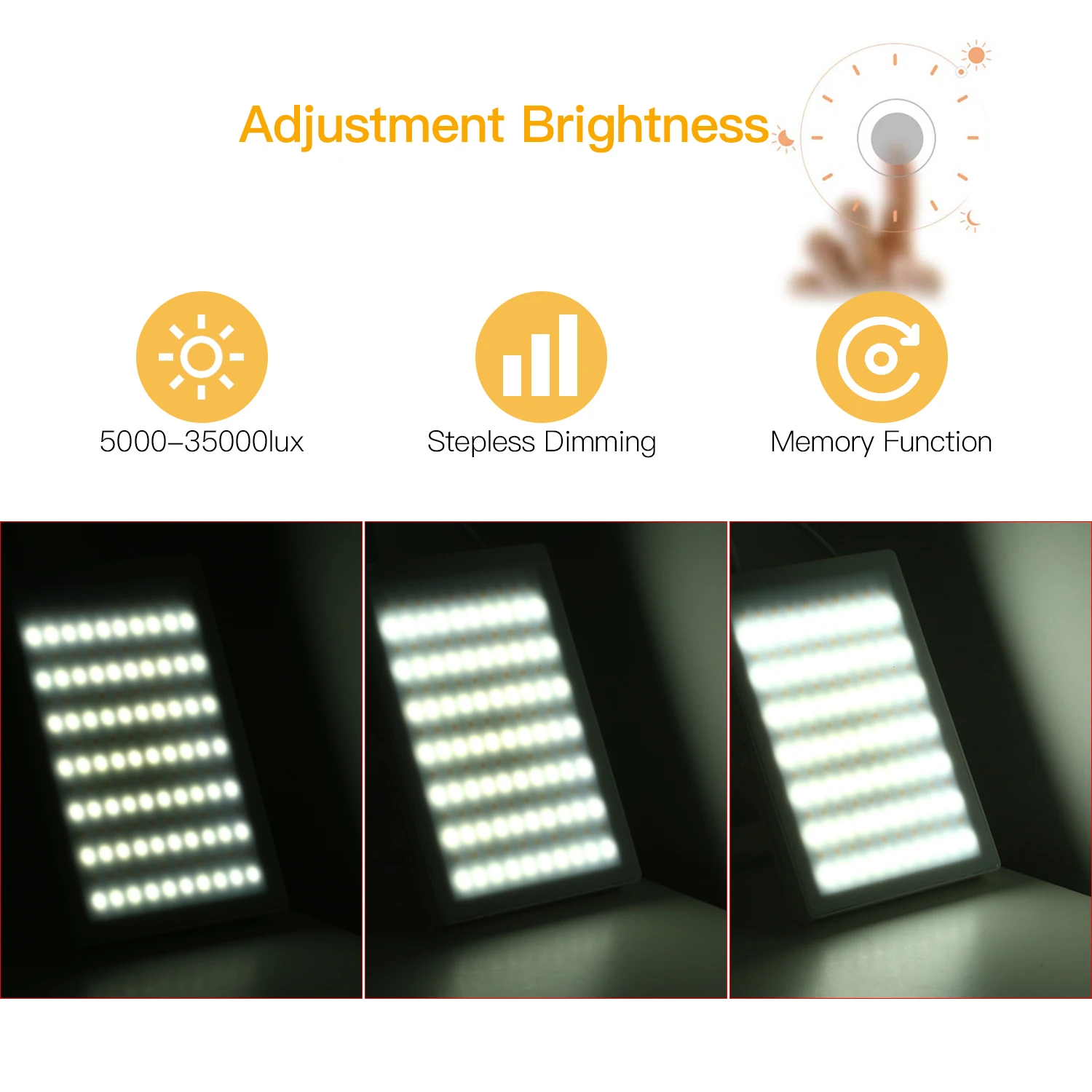 【Регулировка цвета лампы и яркости 】:6000K + 470NM синий светильник с длиной волны, белый/синий/смешанный светильник с регулировкой. 5000-35000lux, поддержка плавного затемнения. Светодиодная лампа с функцией памяти, вам не нужно снова регулировать светильник, когда вы используете его в следующий раз.