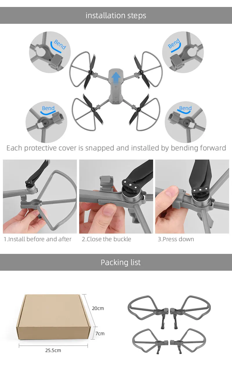 Особенность: 1. Изготовлен из высококачественных материалов с хорошей прочностью, 2. Защищает пропеллер, предотвращая попадание пропеллера на людей или предметы, а также предотвращает попадание посторонних предметов на Пропеллер и влияет на безопасность полета, 3. Высота посадочного шасси эффективно увеличена на 2,5 см, и он все еще может взлетать и приземляться в неровной среде земли, которые могут избежать наземного мусора в самолете при посадке и взлете или повредить облачную платформу, 4. Простота установки и долговечность. Описание: Материал: АБС-пластик, Подходящие модели: для DJI Mavic Air 2, Цвет: серый, Вес нетто: 74 г, Вес посылка: 208 г, Размер игрушки: около 14,3*18,5*9 см (спереди), около 14,3*18,5*7 см (сзади), Размер посылка: 25,5*7*20 см. Комплектация: 1 комплект крышка винта