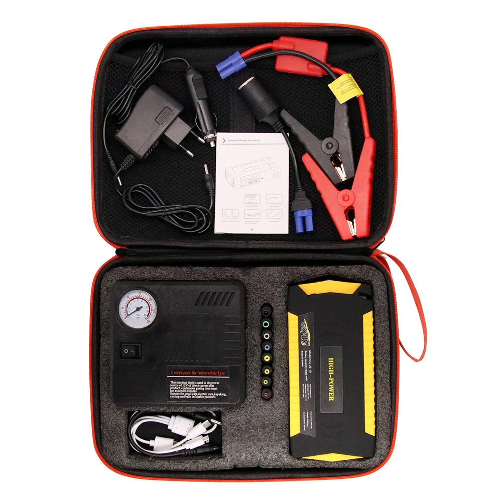 Высокомощный стартер скачка автомобиля-стартер скачка автомобиля, для запуска 12V бензиновый автомобиль (до 5.0L) и дизельный автомобиль (до 3.0L) как раз в считанные секунды, когда батарея автомобиля мертва; Портативный автомобильный воздушный компрессор-не беспокойтесь о шинах в любое время. Портативные 4USB портативные электронные устройства для зарядки, такие как мобильные телефоны, планшеты, портативная игровая система, цифровые камеры, видеокамеры, Bluetooth гарнитуры, портативные gps-устройства, И любые другие электронные устройства с питанием 5 в постоянного тока; Мощное зарядное устройство для ноутбуков-8 адаптеров для разных типов ноутбуков; Предупреждение ющий светильник-Предупреждение ющий светильник был сделан красным и синим цветом светильник s. И стробы разных цветовых огней делают их проще для других, чтобы заметить; Многофункциональный аварийный светильник s - Flash светильник/Стробоскоп светильник/SOS светильник. Если вы находитесь на открытом воздухе в кемпинге и окажетесь в чрезвычайной ситуации, вы можете использовать сигнальный светильник SOS для привлечения внимания. И вы можете использовать его как фонарь со встроенной функцией светодиодный фонарь светильник; Мини Компас и молоток безопасности и резак ремня безопасности-вы никогда не потеряете, где бы вы ни ездили. Лучший помощник при аварийной ситуации; Водонепроницаемость и защита от температуры-запуск легко, даже в-20 ~ 60 °C; Лучшие подарки для вашего отца, братьев, мужа, друзей и себя; Лучший партнер для ваших автомобилей.