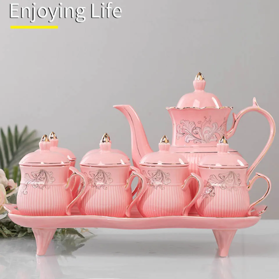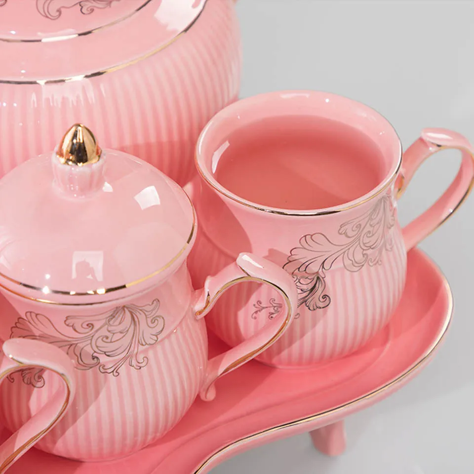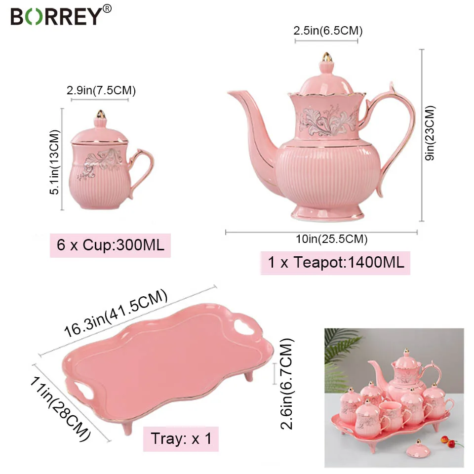 BORREY розовый фарфоровый чайный сервиз, Дворцовый Английский чайный сервиз, ретро Керамическая чайная чашка, горшок, сахарница, молочный кувшин, Цветочная кружка, чайная чашка, кофейная чашка