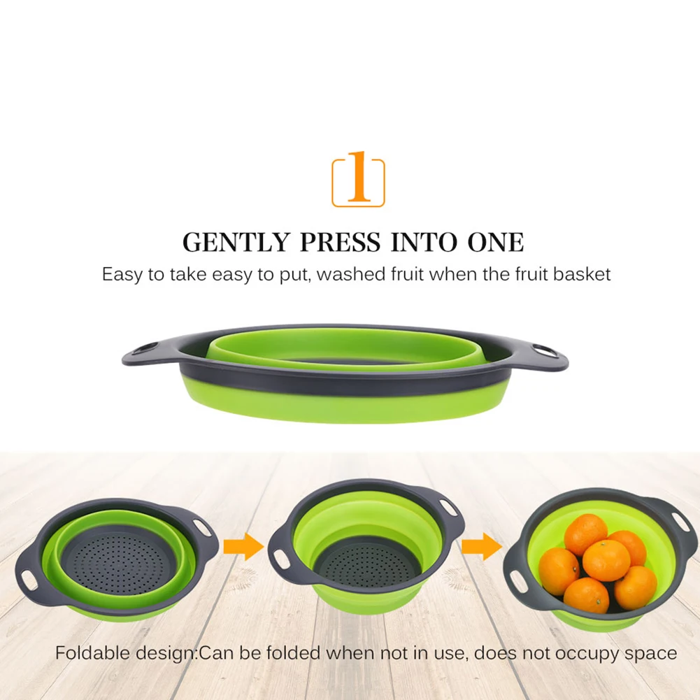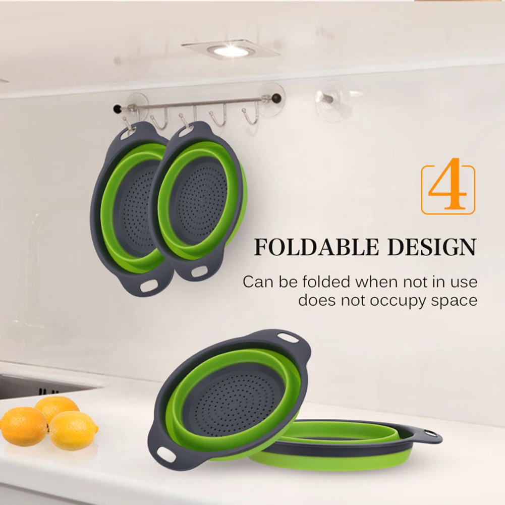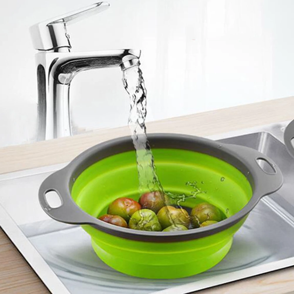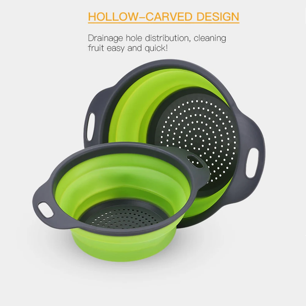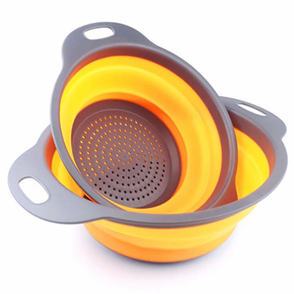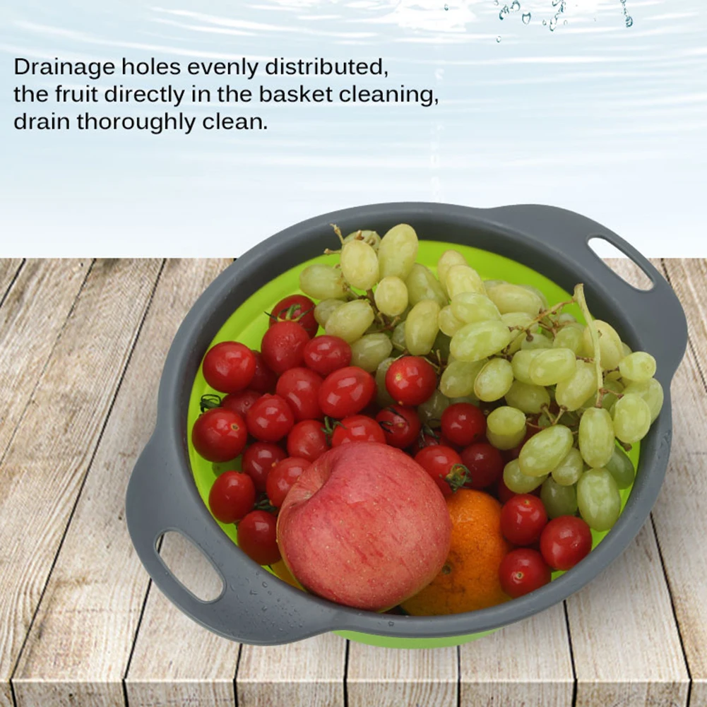 Складное мытье овощей и фруктов закрытый сеткой Слив Фильтр Дуршлаг кремния складная корзина для слива кухня для хранения утвари инструменты