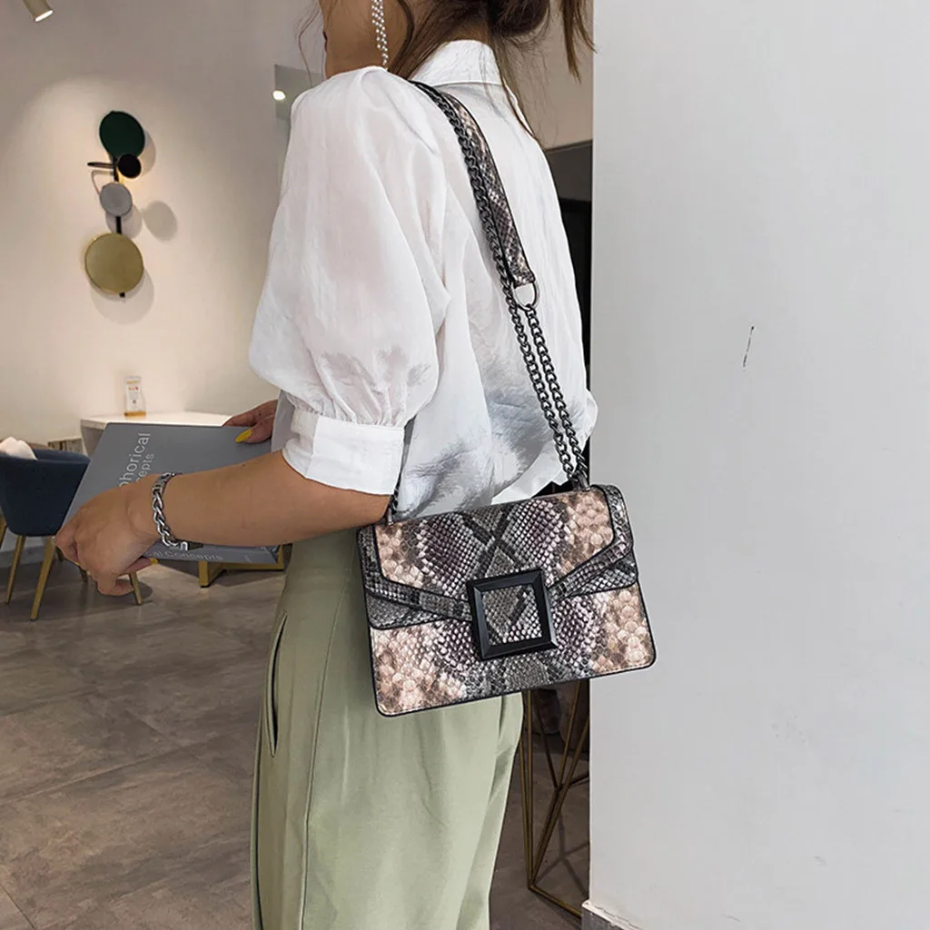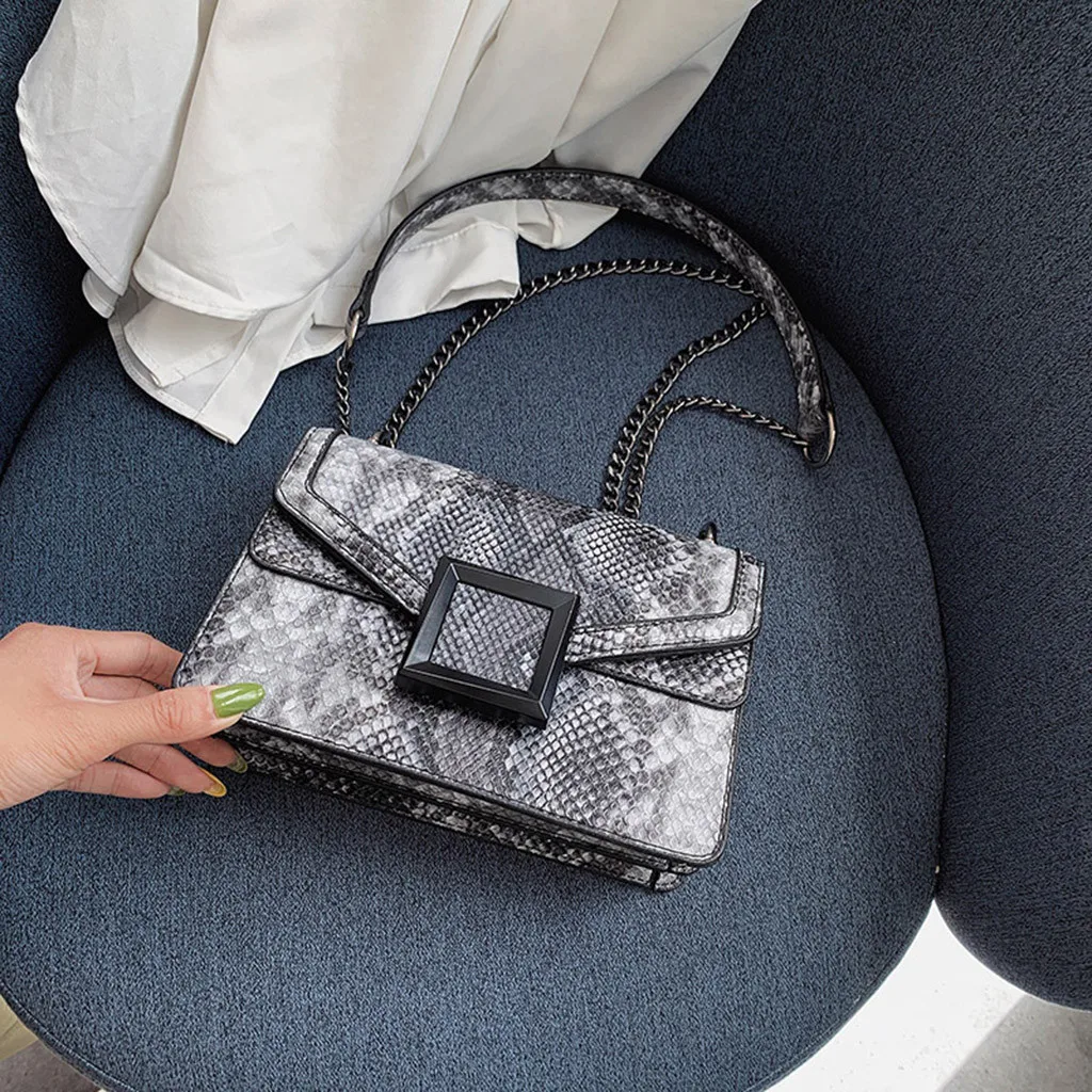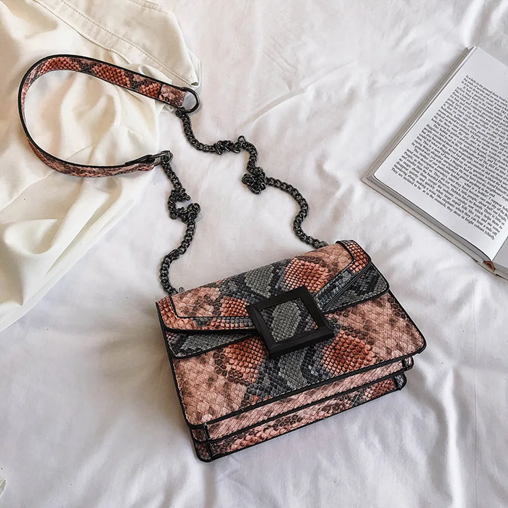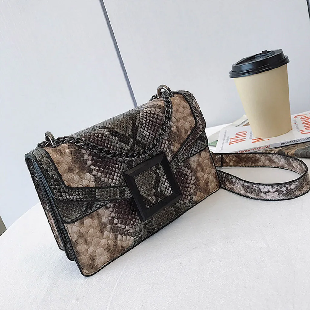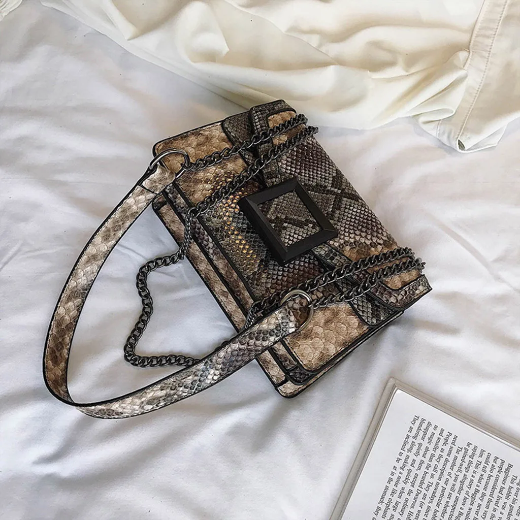 Женская сумка со змеиным принтом, сумка через плечо в винтажном стиле, женская сумка через плечо