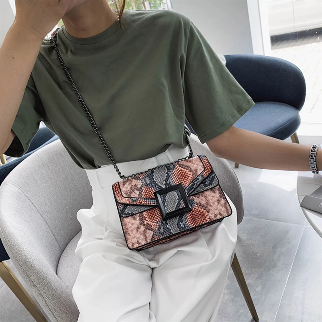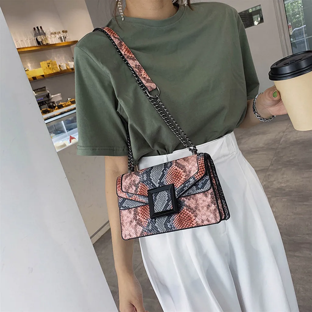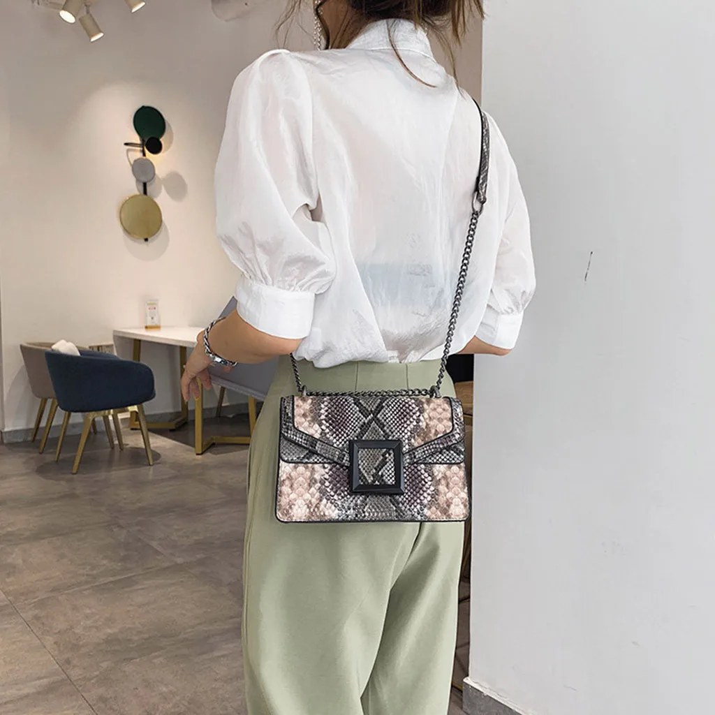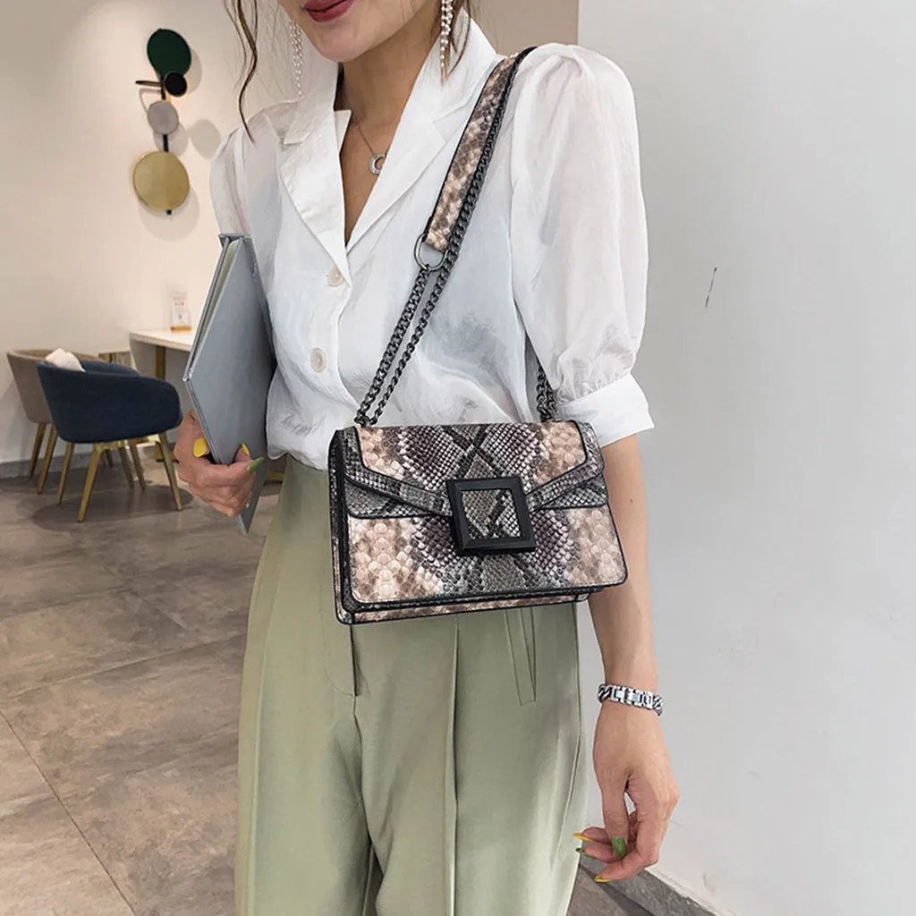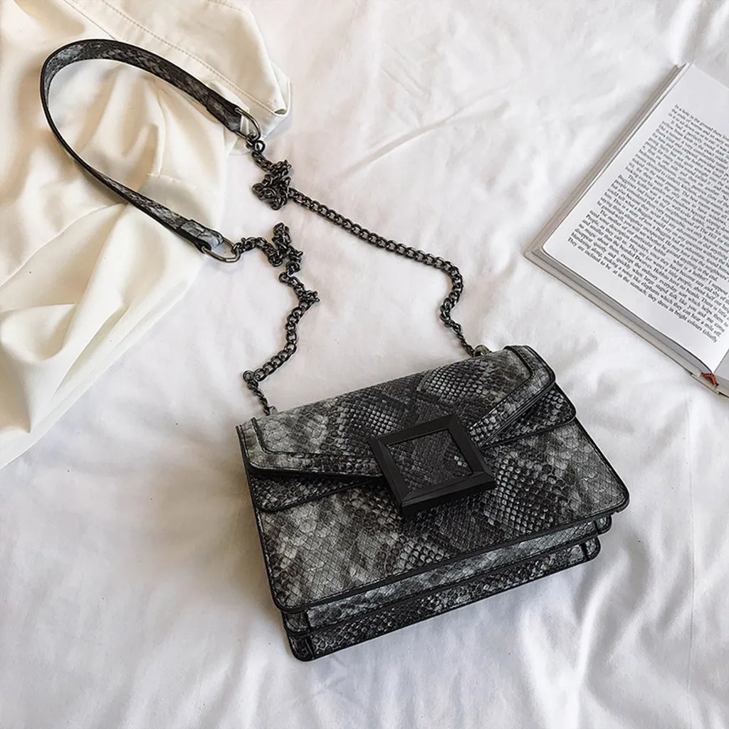 Женская сумка со змеиным принтом, сумка через плечо в винтажном стиле, женская сумка через плечо