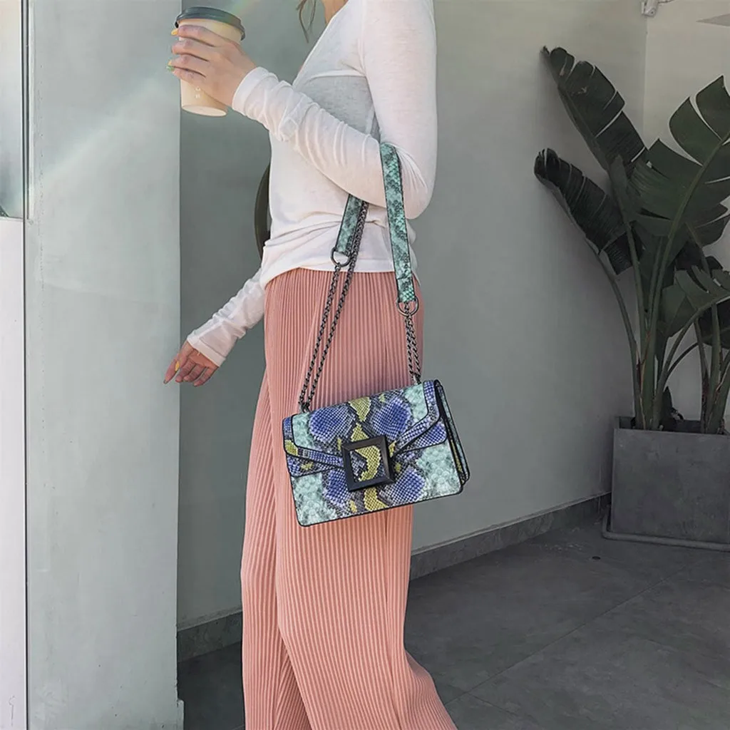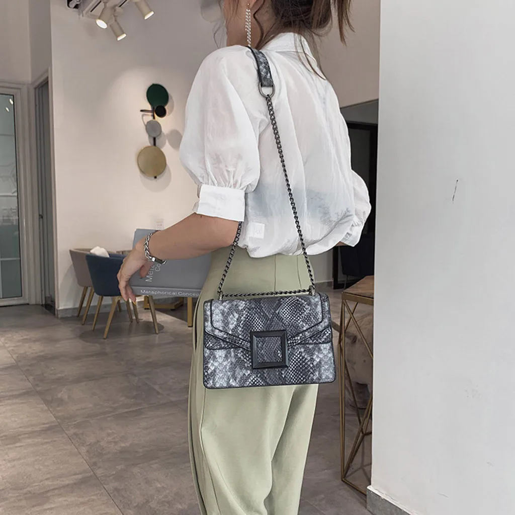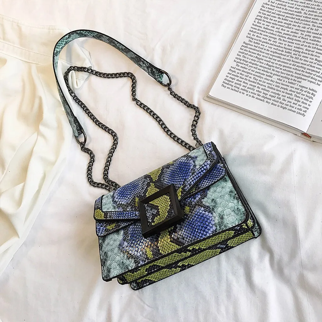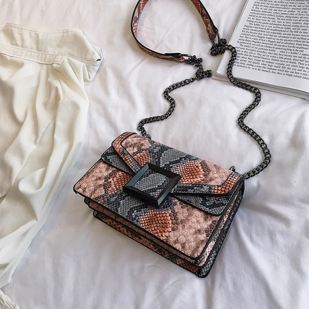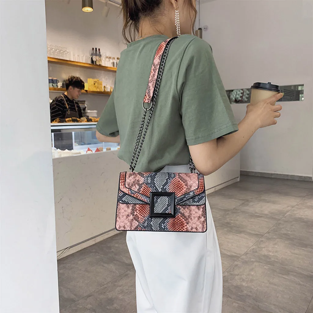 Женская сумка со змеиным принтом, сумка через плечо в винтажном стиле, женская сумка через плечо