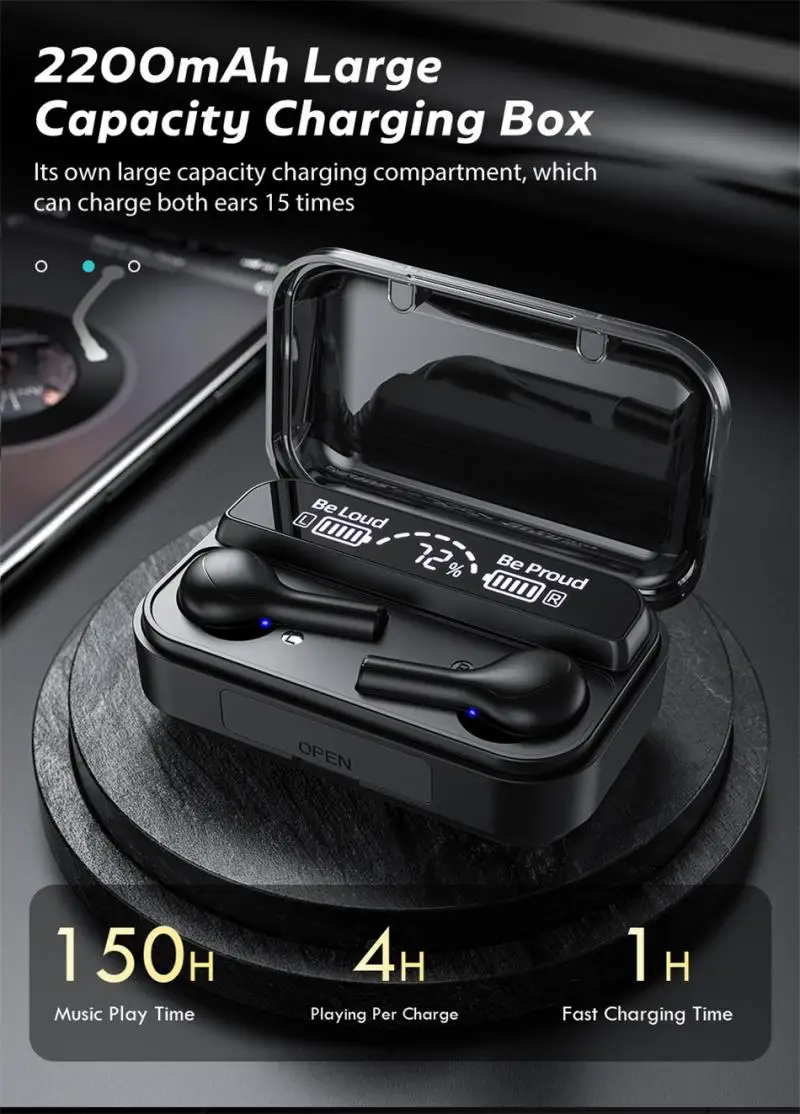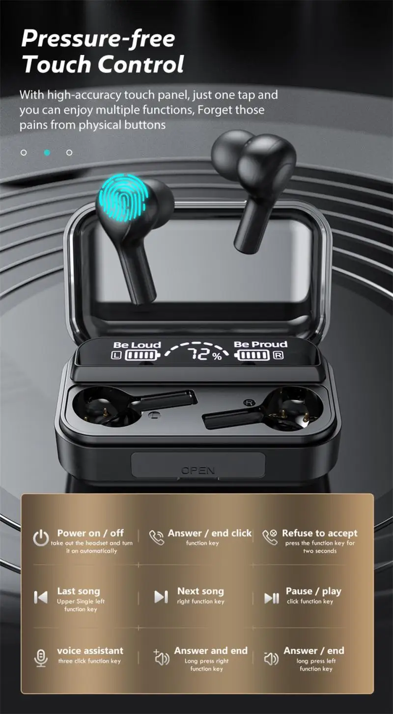 Функция: Сенсорная гарнитура с цифровым дисплеем, сокровище для экстренной зарядки, касание для приостановки воспроизведения музыки, регулировка музыки, увеличение и уменьшение громкости и т. д.