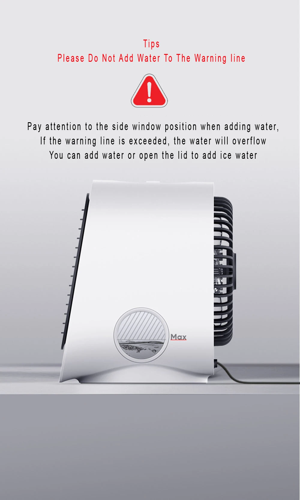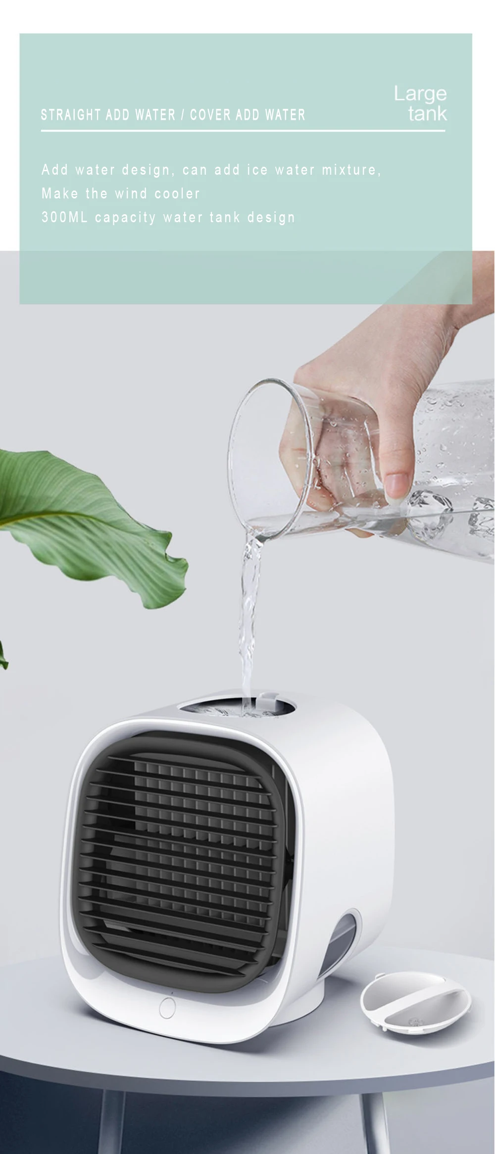【Функция быстрого охлаждения и таймера 】: этот воздушный охладитель может быстро снизить температуру на 5-7 ℃ после добавления ледяной воды. Пожалуйста, сделайте устройство с вашей стороны в пределах 30-50 см.