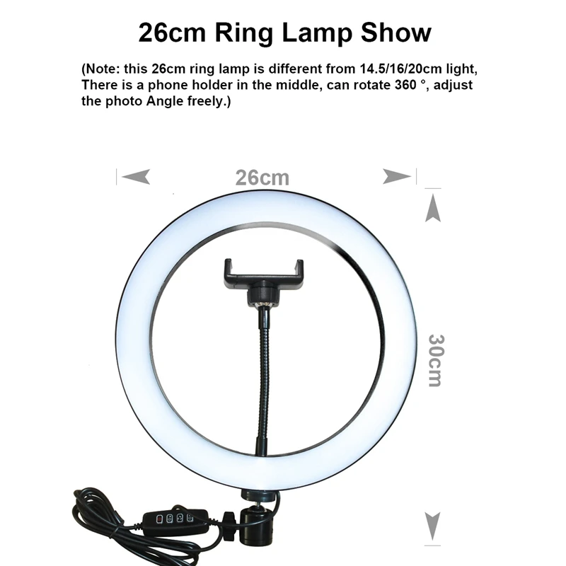 26CM Dimmable LED Ring Light Photo Phone Video Light Lamp with Tripods Selfie Stick Ring Light Phone Holder(Pink)