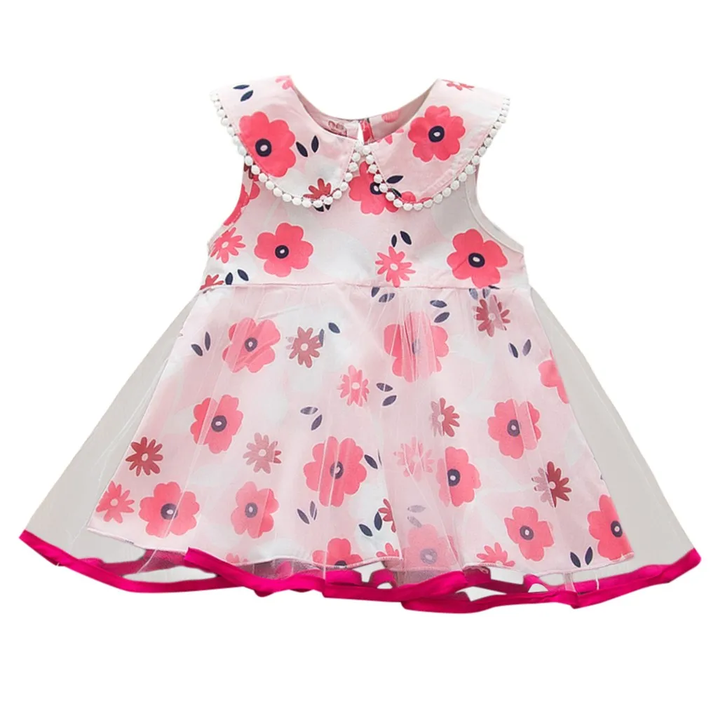 Модное летнее газовое платье без рукавов с цветочным принтом для маленьких девочек