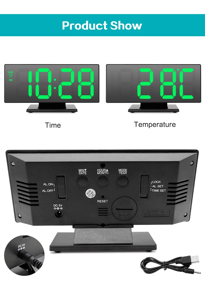 -2 способа питания: вы можете поместить эти цифровые часы на стол, питание от USB кабеля.