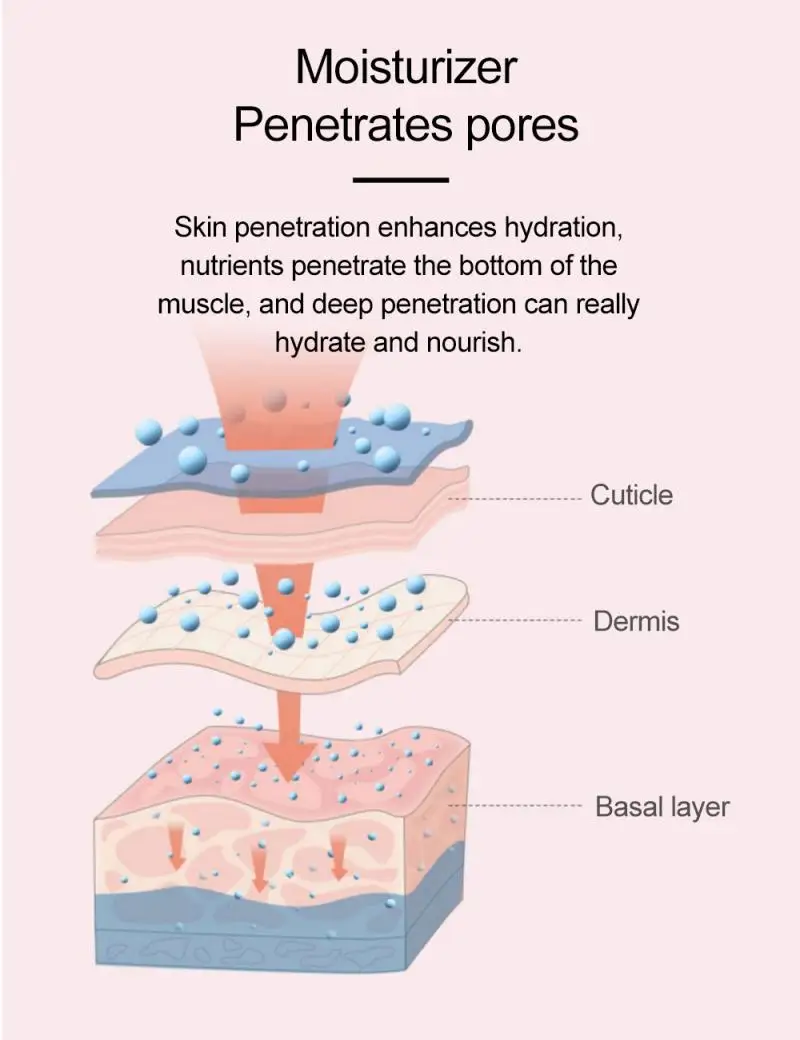 Он использует передовые технологии, чтобы генерировать нано-ионный холодный туман, проникает в базальный клеточный слой кожи, который до 10х более глубоко увлажняет кожу.