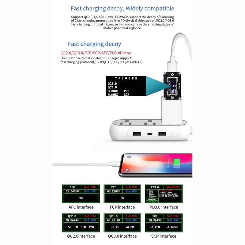 1. Одно кнопочное автоматическое зарядное устройство для обнаружения протоколов поддерживает быструю зарядку (QC2.0 / QC3.0 / FCP / SCP / AFC /PD3.0)