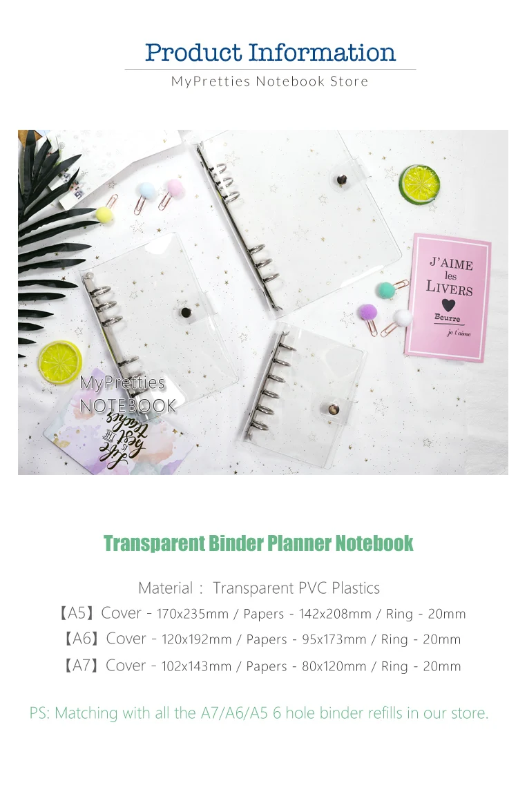 Размер крышки: A7: 102*143 мм/A6: 120*192 мм/A5: 170*235 мм