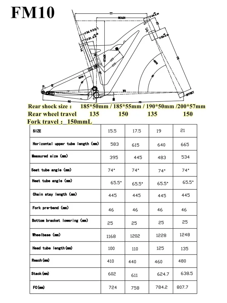 Тип все горные рамы Модель FM10 Изделие содержит: только каркас Отделка UD черный матовый/глянцевый Заднее пространство через ось 148x1 2 мм/142*12 мм Доступные Размеры 15,5 ''/17,5'' /19'' Материал: углеродное волокно Toray t700 Нижний Кронштейн BB92 Рама весовая рама 3001 г (19 ''148*12 мм) Индивидуальное обслуживание краски принимает требования к настройке Функция Boost Передняя 110*15/Boost задняя 148*12 мм Коническая гарнитура (1-1/8 ", 1-1/2") Тормоз 160 мм дисковый тормозной пост крепление (180 мм нужно добавить адаптер) Передний переключатель D-type боковые качели Вилка Путешествия 150 мм Задний ход колеса 135-150 мм Задний амортизатор: 185*50 мм/185*55 мм/190*50 мм/200*57 мм Задний амортизатор длиной 50/57 мм Кривошип с одной скоростью (shiman0 Max 36T) Максимальная шина 2,8" Размеры шин 27,5*2,4/2,6/2,8 и 29*2,35 Подседельный штырь 31,6 мм Гарантия 2 года