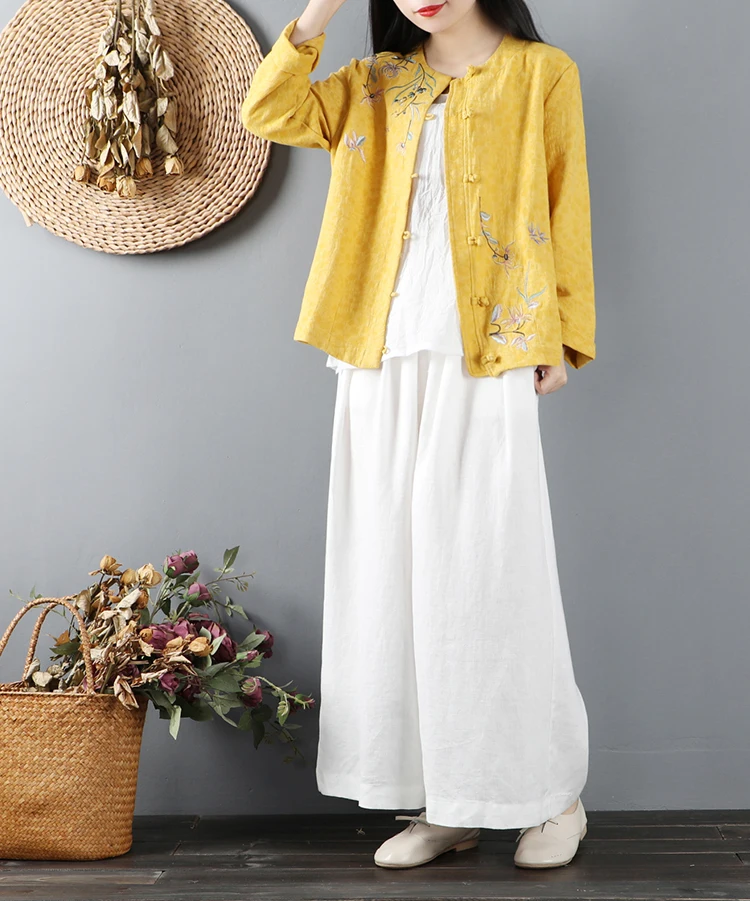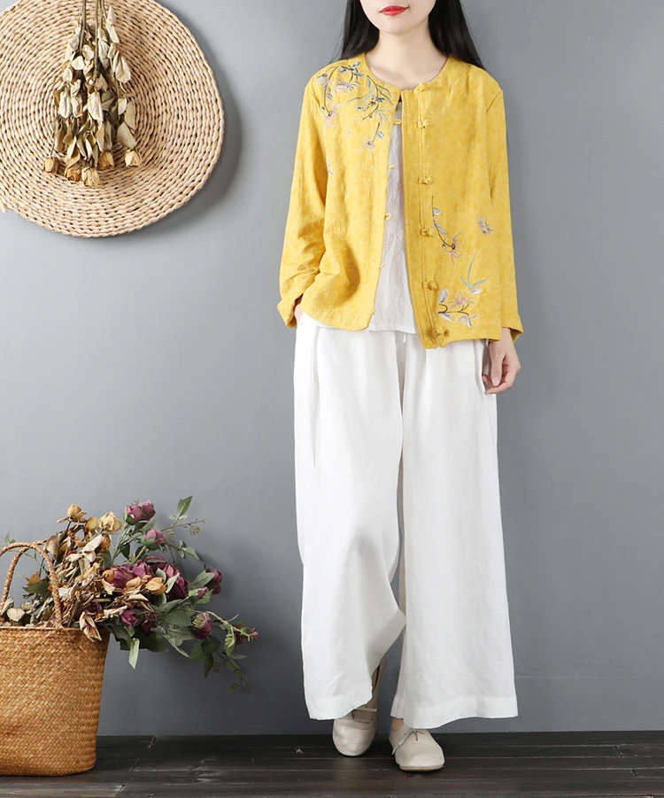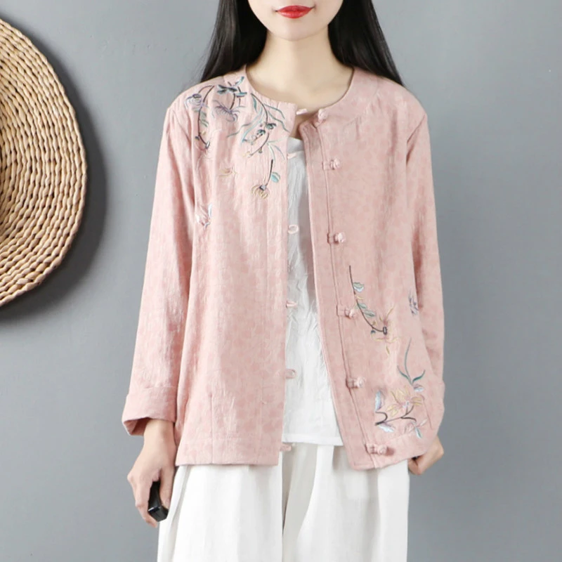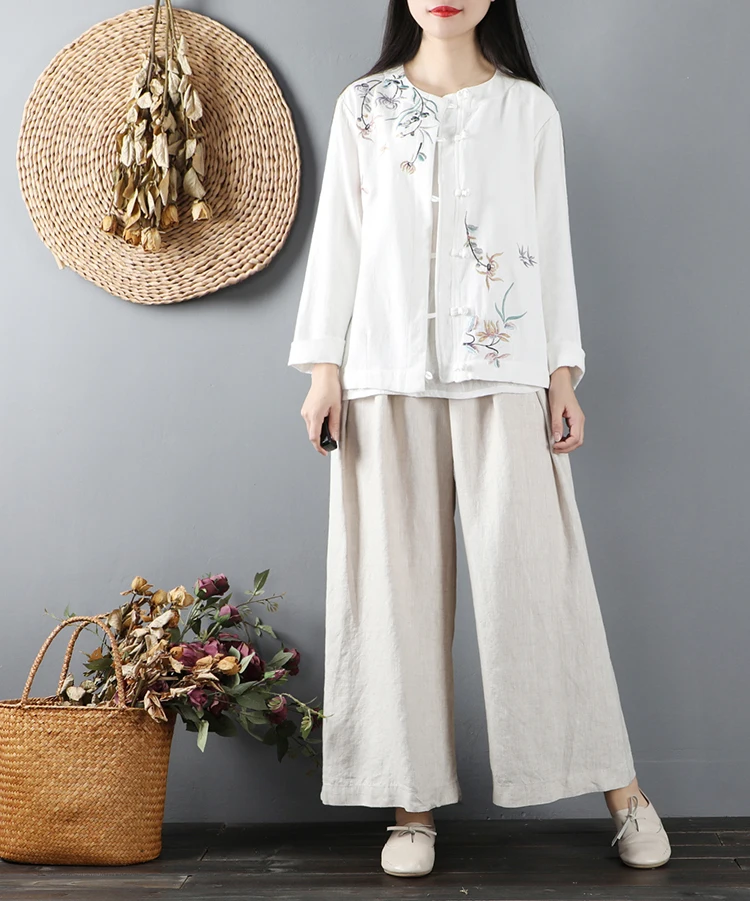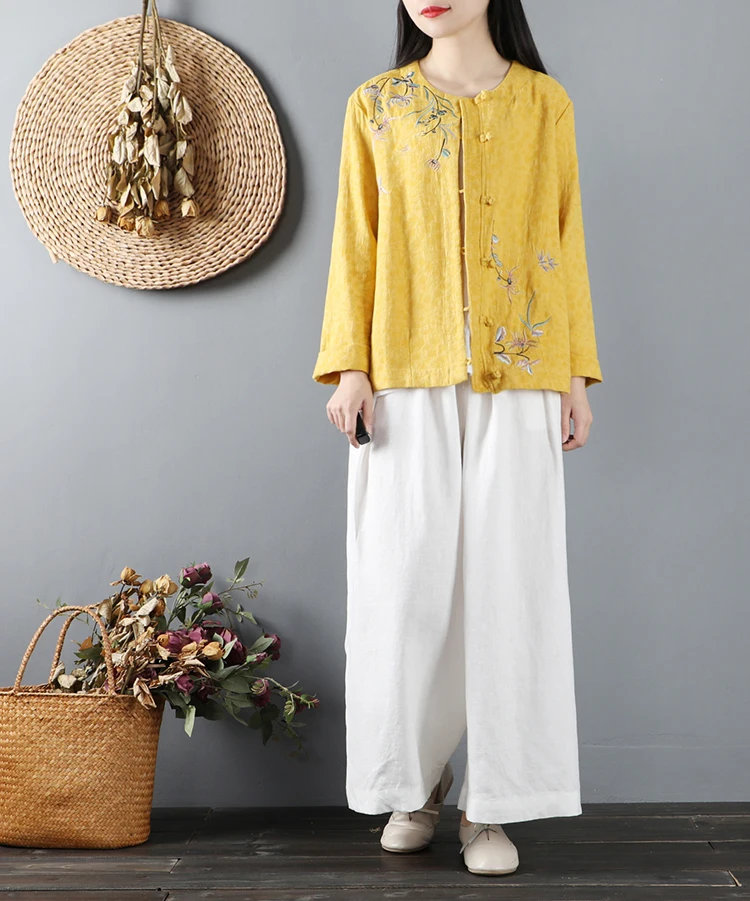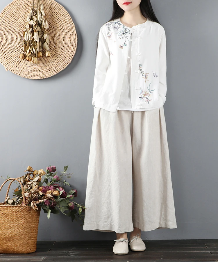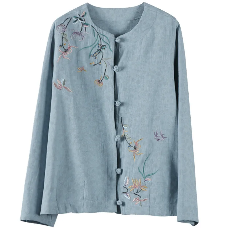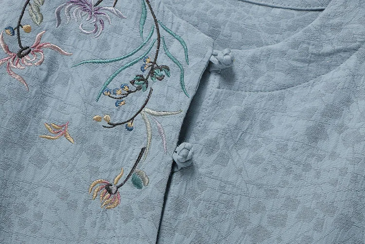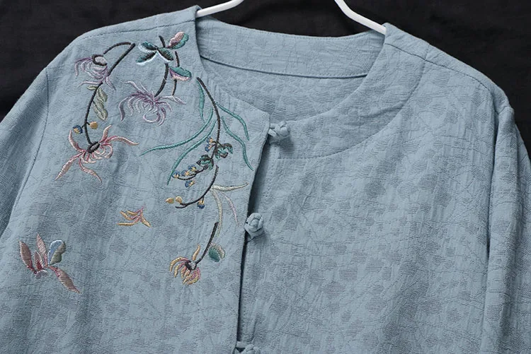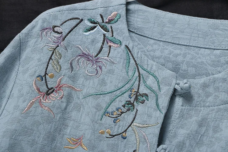 Китайские повседневные хлопковые рубашки с цветочной вышивкой размера плюс