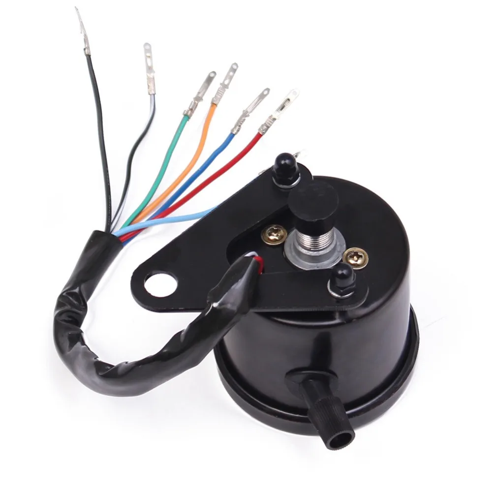 Диапазон измерения: 0 ~ 160 км/ч Входное напряжение: 12 В постоянного тока Светодиодный индикатор: нейтральный светильник, головной светильник, указатель поворота Размер: 68 мм (2,7 ") наружный диаметр, 56 мм (2,2") высота, 10 мм монтажное отверстие Универсальный подходит для большинства моделей мотоциклов (пожалуйста, проверьте размер перед покупкой) Инструкции: не прилагаются Проводное Соединение: Черный-отрицательный, красный-подсветка положительная Черный-отрицательный, зеленый-нейтральная передача, синий-индикатор фары, желтый-индикатор сигнала поворота Посылка включает в себя: