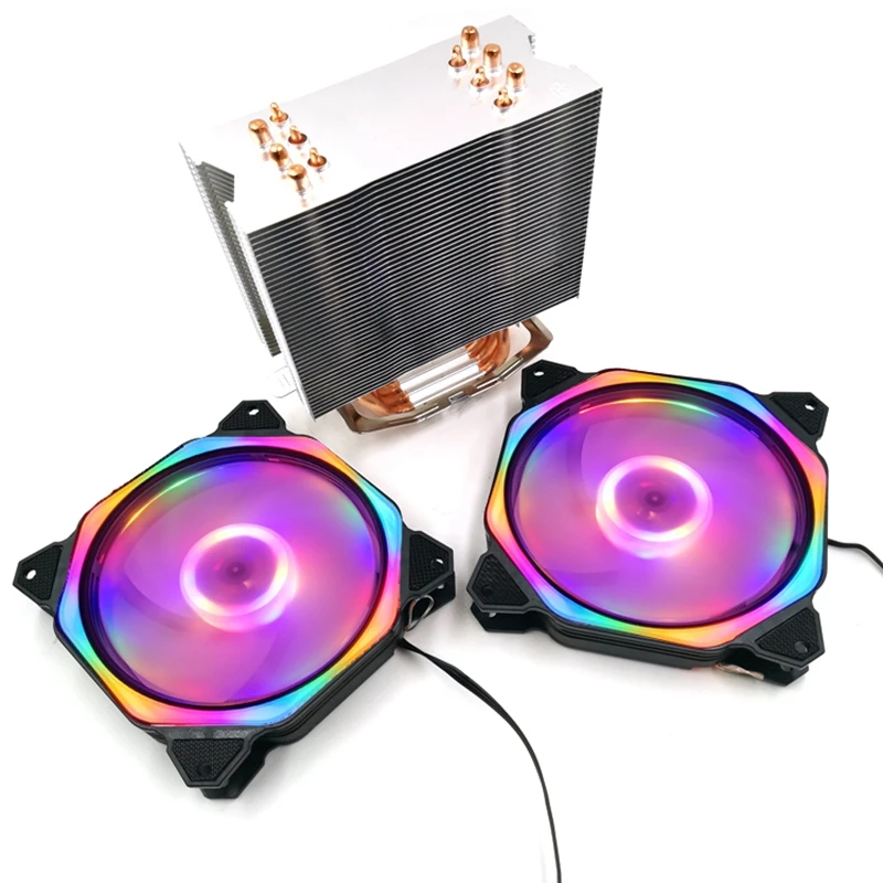 12 см Процессор охладитель двойной светодиодный вентилятор 6 тепловой трубы 4Pin Процессор вентилятор Процессор радиатора для 775/1150/1155/1156/1366 для AMD все