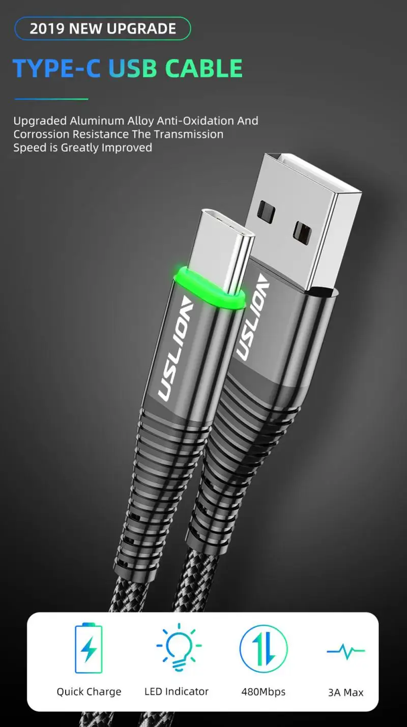 *TYPE-C USB CABLE:Upgraded Aluminum Alloy Anti-Oxidation And Corrossion Resistance The Transmission Speed is Greatly Improved.