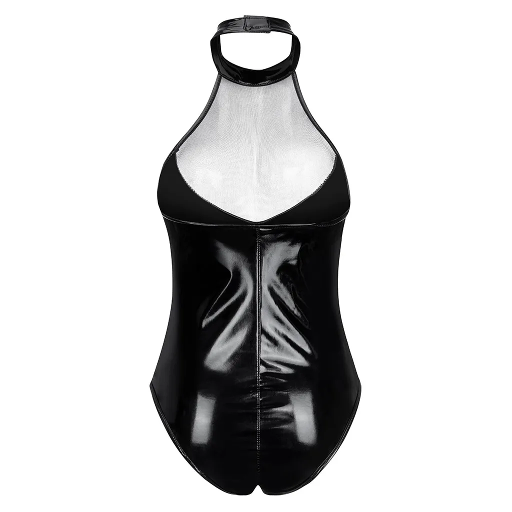 Сексуальная Женская цельная лакированная кожа пальто комбинезон боди Тедди S-XXL